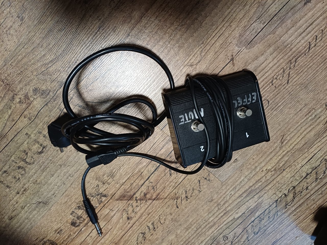 Mitkommen noch der Kaltgeräte stecker (logo!) und ein Stereoschalter mit dem man per fuß den amp "muten" zum stimmen via tuner ausgang bzw. den effekteinschleifweg an /aus schalten kann. (geht natürlich auch via kippschalter siehe fotos - um diese via fussschalter zu tätigen muss, man nur beide Kippschalter auf ON stellen wenn ichs richtig in erinnerung habe, denn ich habe den schalter nur kurz mal vor über 10 jahren im einsatz gehabt)