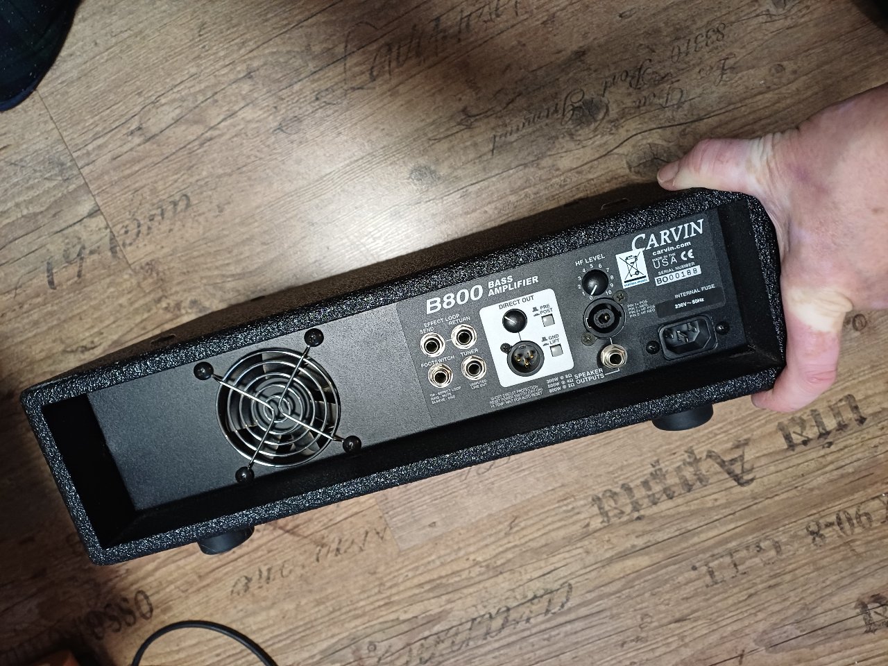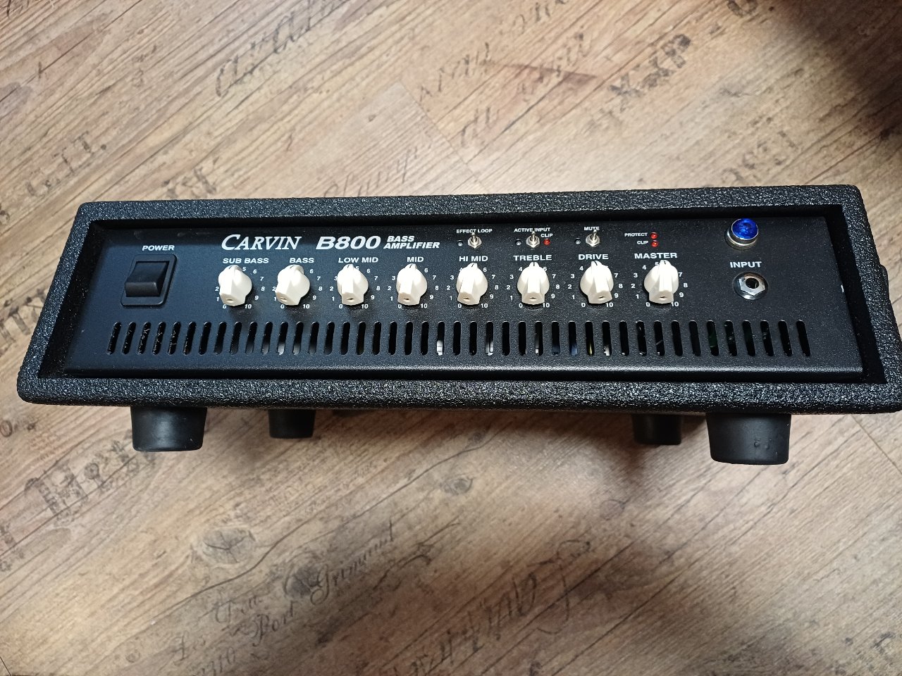 Carvin B 800 Bass Amp, analoger Poweramp im kompakten Gehäuse,ca 10 kg, sehr guter Zustand, vor 3 Jahren komplett gewartet, 800 W an 2, 500 W an 4 und 300 w an 8 Ohm, sehr guter lauter und charaktervoller amp. Power ohne ende mit sehr gutem DI ausgang.