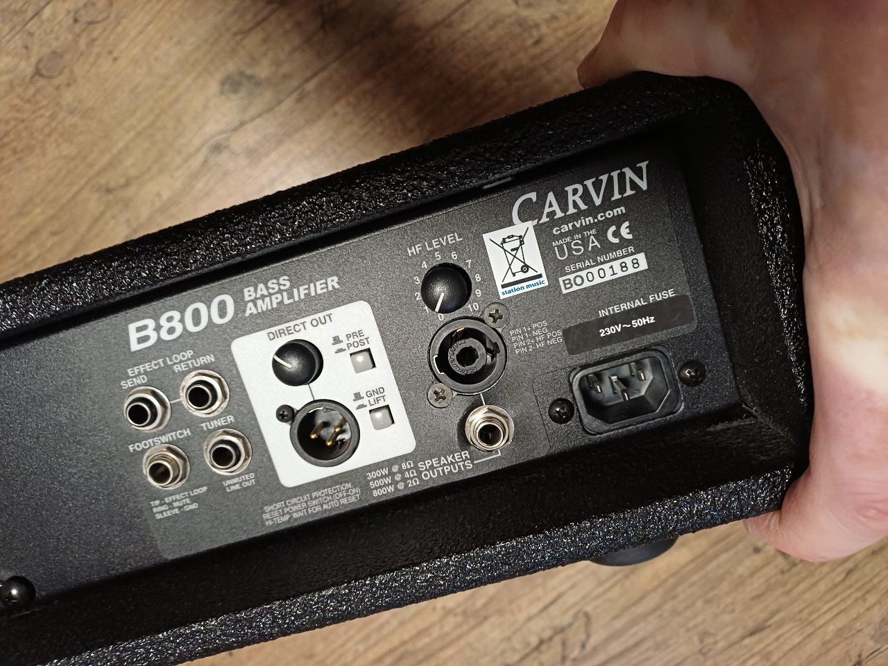 Carvin B 800 Bass Amp, analoger Poweramp im kompakten Gehäuse,ca 10 kg, sehr guter Zustand, vor 3 Jahren komplett gewartet, 800 W an 2, 500 W an 4 und 300 w an 8 Ohm, sehr guter lauter und charaktervoller amp. Power ohne ende mit sehr gutem DI ausgang.