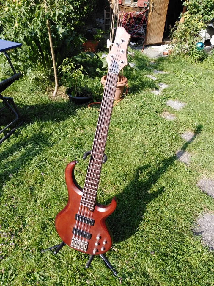 Ibanez BTB 555, sieht toll aus, hat ein fettes definiertes Fundament, spielt sich saugut, klingt aber immer irgendwie farblos trotz Dreibandklangregelung mit parametrischen Mitten.