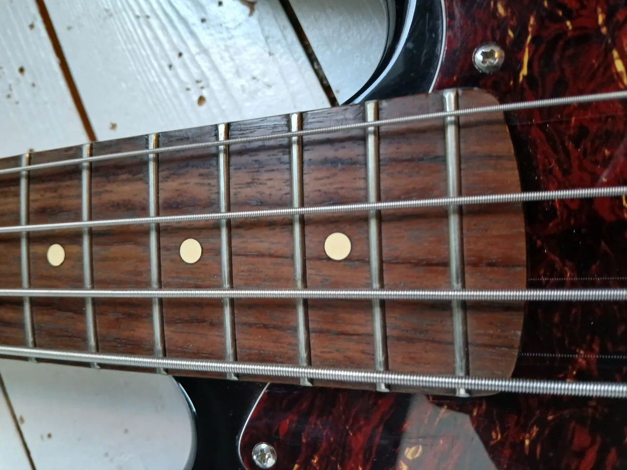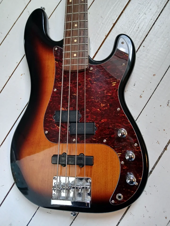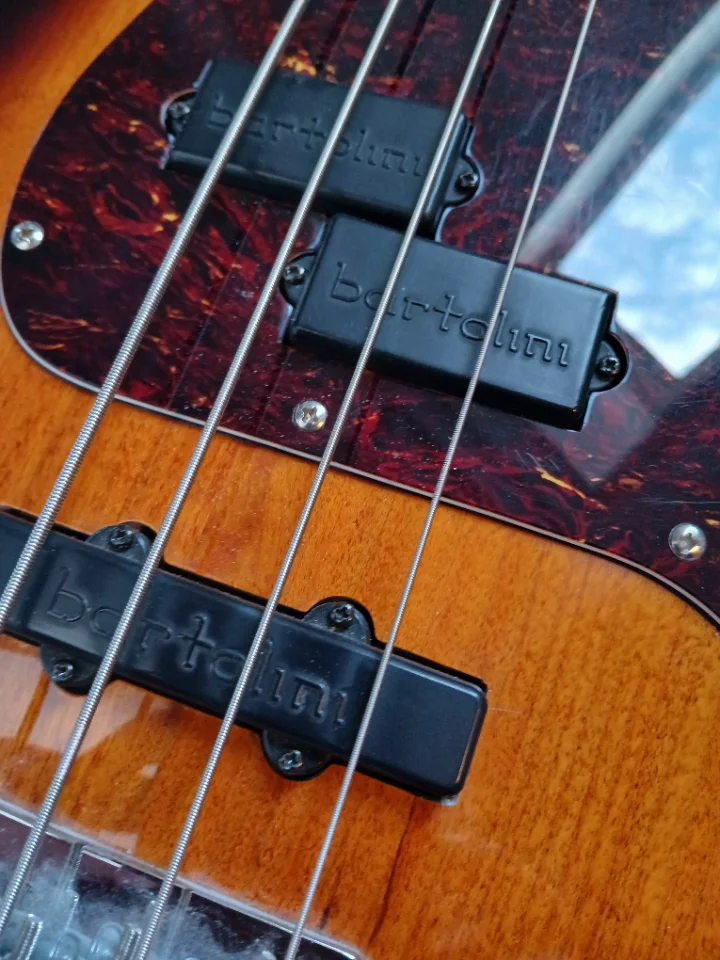 Toller, bei Cort in Korea in den 80ern/90ern gefertigter PJ mit Korpus aus kanadischem Bergahorn, Neck Tilt Funktion, Schaller licensed Tuner. Ich habe ihm alte Bartolinis spendiert! Machen ihn wirklich zu einem tollen Instrument.