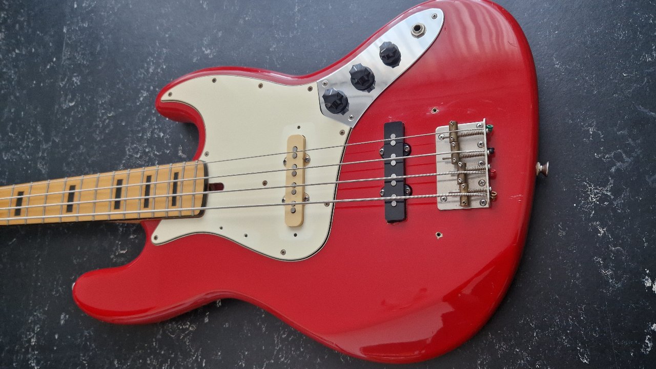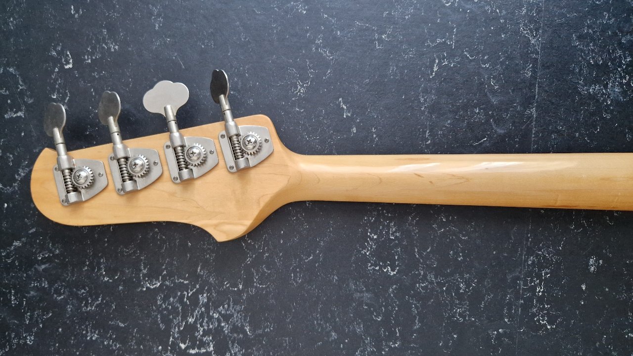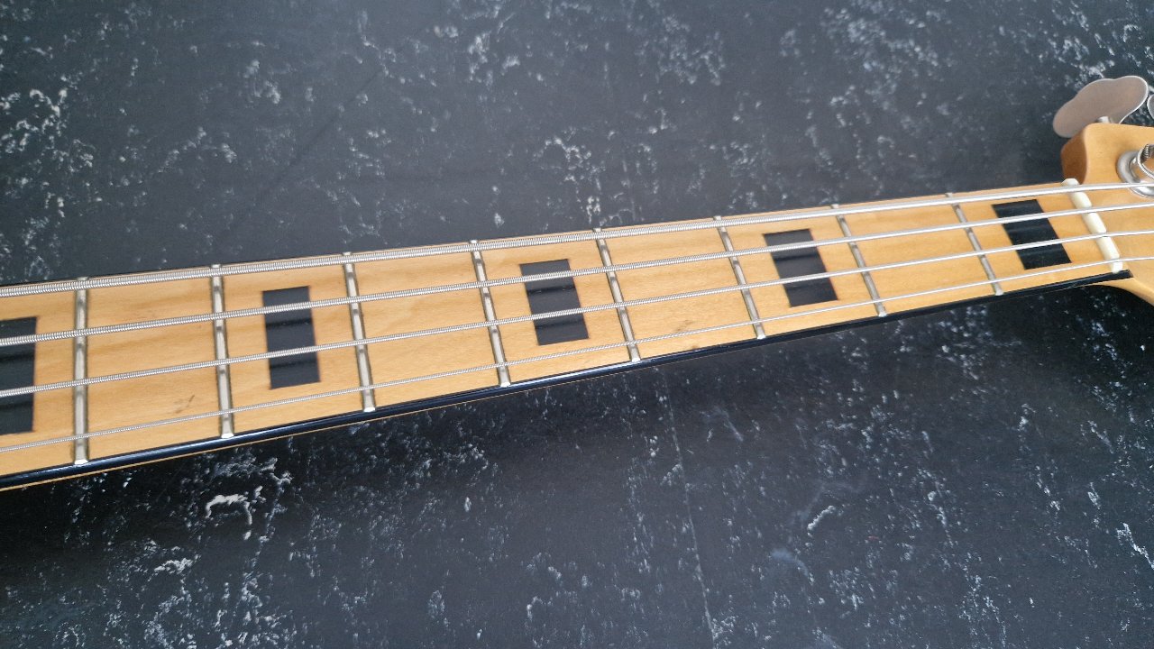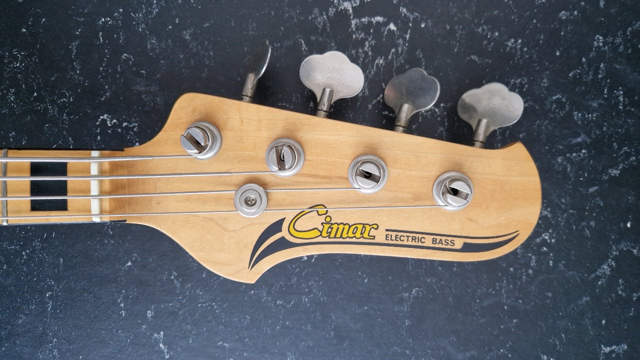 Verkaufe einen Cimar 2072 Bass, welcher in den frühen 80er-Jahren in Japan gefertigt wurde. Er verfügt (gemäss Internet) über einen Mahagoni-Korpus und einen Ahornhals mit aufgeleimtem Ahorn-Griffbrett. Der Hals liegt mit einer Breite von ca. 41mm irgendwo zwischen Jazz und Precision Bass und ist mit den schwarzen Block-Inlays und dem Binding optisch an die Fender Modelle aus den 70ern angelehnt. Der Hals und die Bünde sind in einem dem Alter entsprechend sehr guten Zustand und der Bass lässt sich sehr gut bespielen.