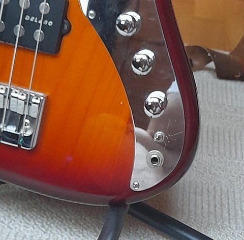 Der Zustand ist gut bis sehr gut; einzig kaum sichtbare kleine, beim Bespielen unvermeidbare Krätzerchen, kleinste Absplitterung an der oberen Griffbrettkante (man kann es also beim Spiele nicht spüren) und der Lackschaden an den Halsschrauben (s.Bilder) => s. Text vom Vorbesitzer. Dafür habe ich eine schwarz lackierte Edelstahlplatte montiert, die den Lackschaden abdeckt. Kann dann vom Käufer entschieden werden, ob er den Bass mit oder ohne Halsbef.-Platte haben will. Der Body-Lack ließe sich bestimmt auch ausbessern.
