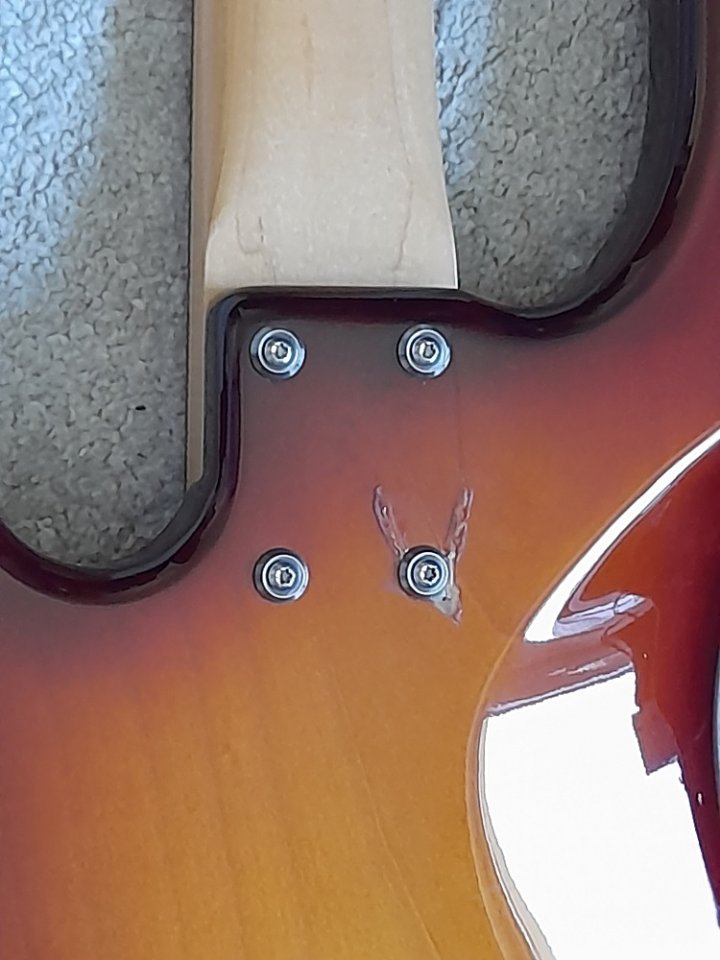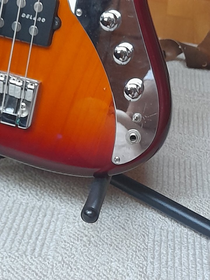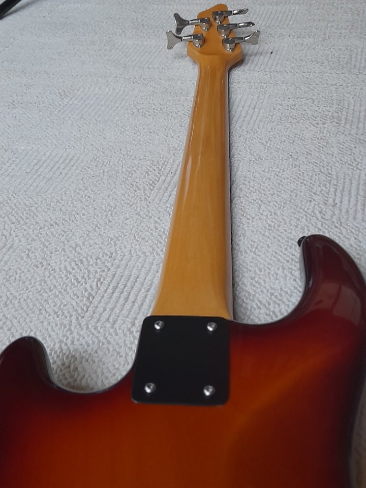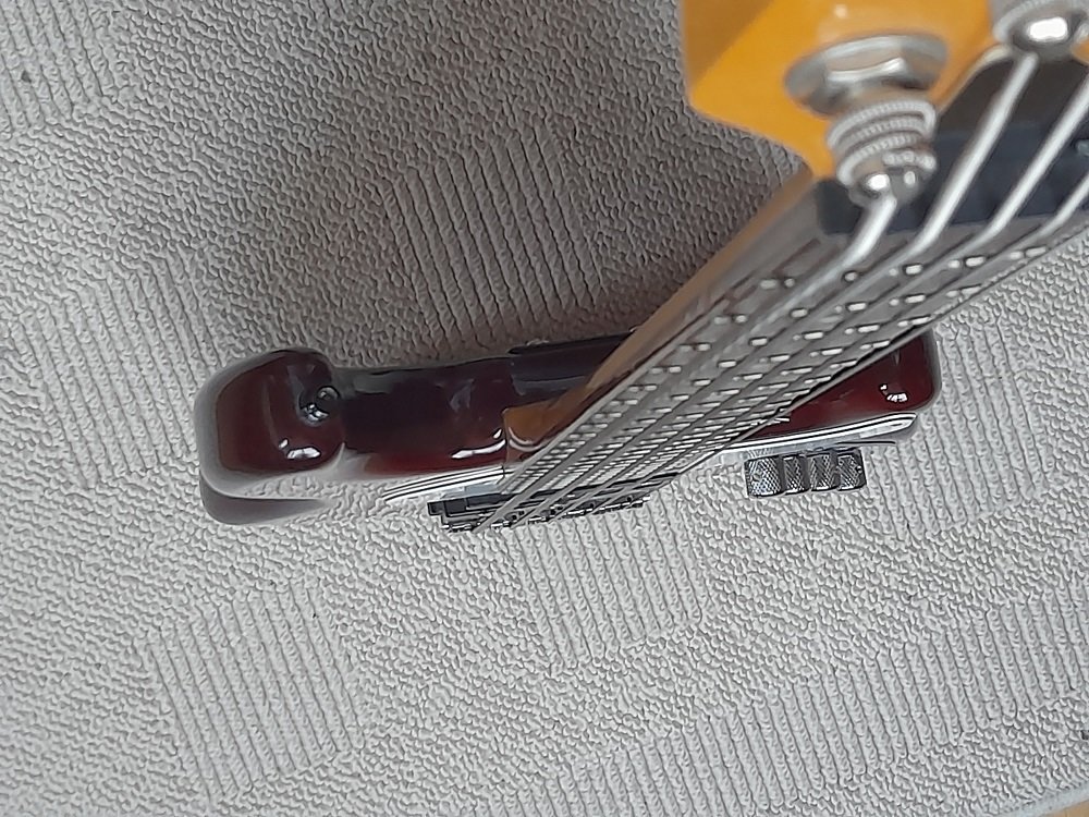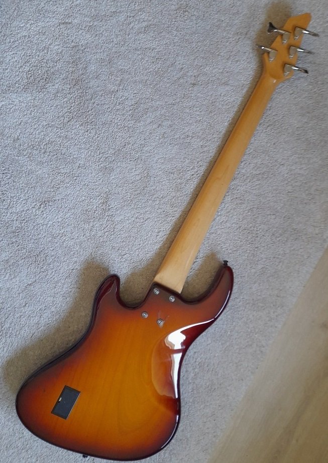 Der Zustand ist gut bis sehr gut; einzig kaum sichtbare kleine, beim Bespielen unvermeidbare Krätzerchen, kleinste Absplitterung an der oberen Griffbrettkante (man kann es also beim Spiele nicht spüren) und der Lackschaden an den Halsschrauben (s.Bilder) => s. Text vom Vorbesitzer. Dafür habe ich eine schwarz lackierte Edelstahlplatte montiert, die den Lackschaden abdeckt. Kann dann vom Käufer entschieden werden, ob er den Bass mit oder ohne Halsbef.-Platte haben will. Der Body-Lack ließe sich bestimmt auch ausbessern.
