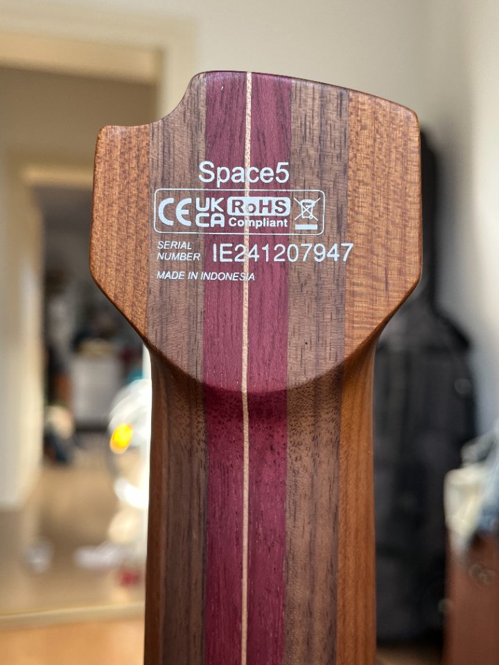 Wichtig war für mich, dass er ein Griffbrett mit ganz normaler Mensur 34“ hat . Es hat 24 Bünde.