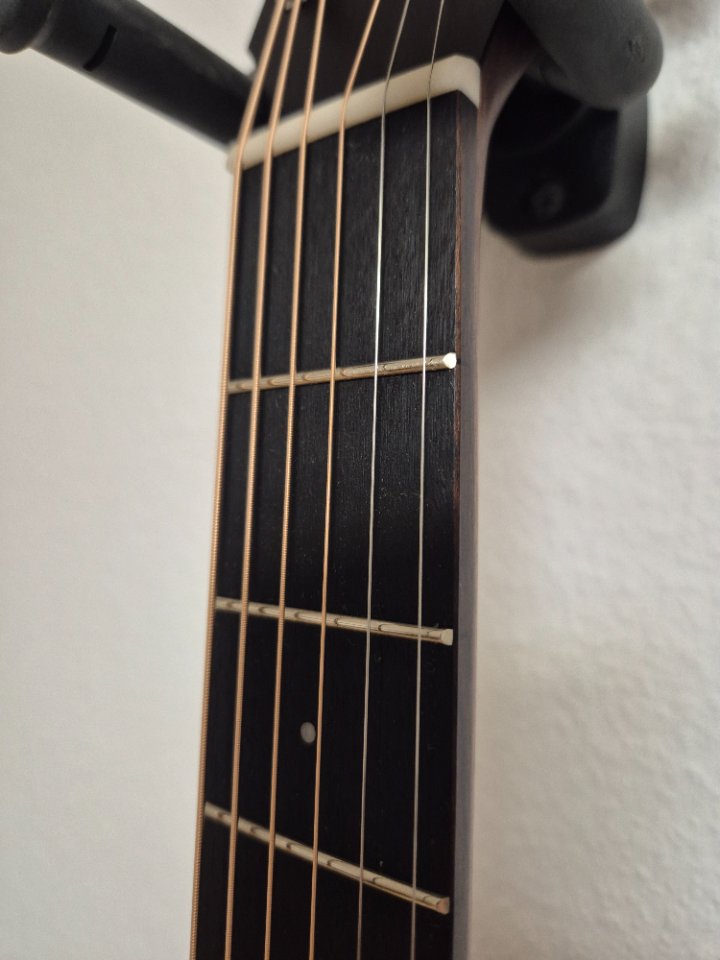 Die Gitarre ist quasi neu. Ich habe sie erst im November 2025 gekauft (Rechnung liegt bei für die Garantie), aber meien Rückkehr zu den dünnen Saiten war nur sehr kurz erfolgreich...