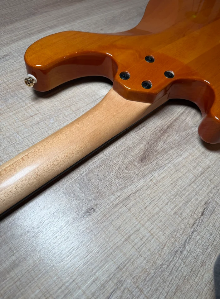 Der Hals fühlt sich auch wie ein Jazzbass Hals an und kommt laut Hersteller mit einem Ebenholz Griffbrett,