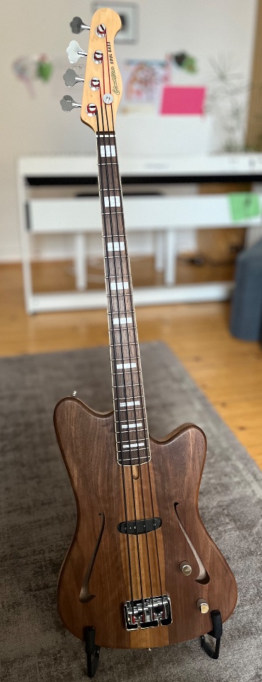 Grundlegende Idee zu diesem Bass war der Gibson Non Reverse Thunderbird und der Deimel Firestar Bass.
