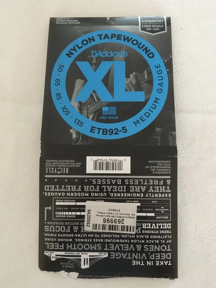 Verkaufe Saitensatz (fünfer) für E-Bass D‘Addario ETB92-5 Nylon Tapewound Medium Gauge 50, 65, 85, 105, 135.