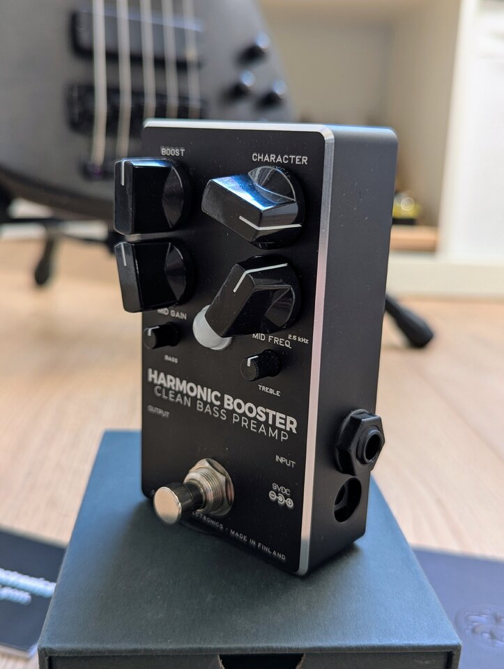 Auf der LED klebt ein "Rockboard LED Damper", da mir diese fiesen LEDs im Dunkeln immer viel zu hell sind. Kann natürlich sehr einfach abgemacht werden, ebenso das Klett auf der Rückseite
