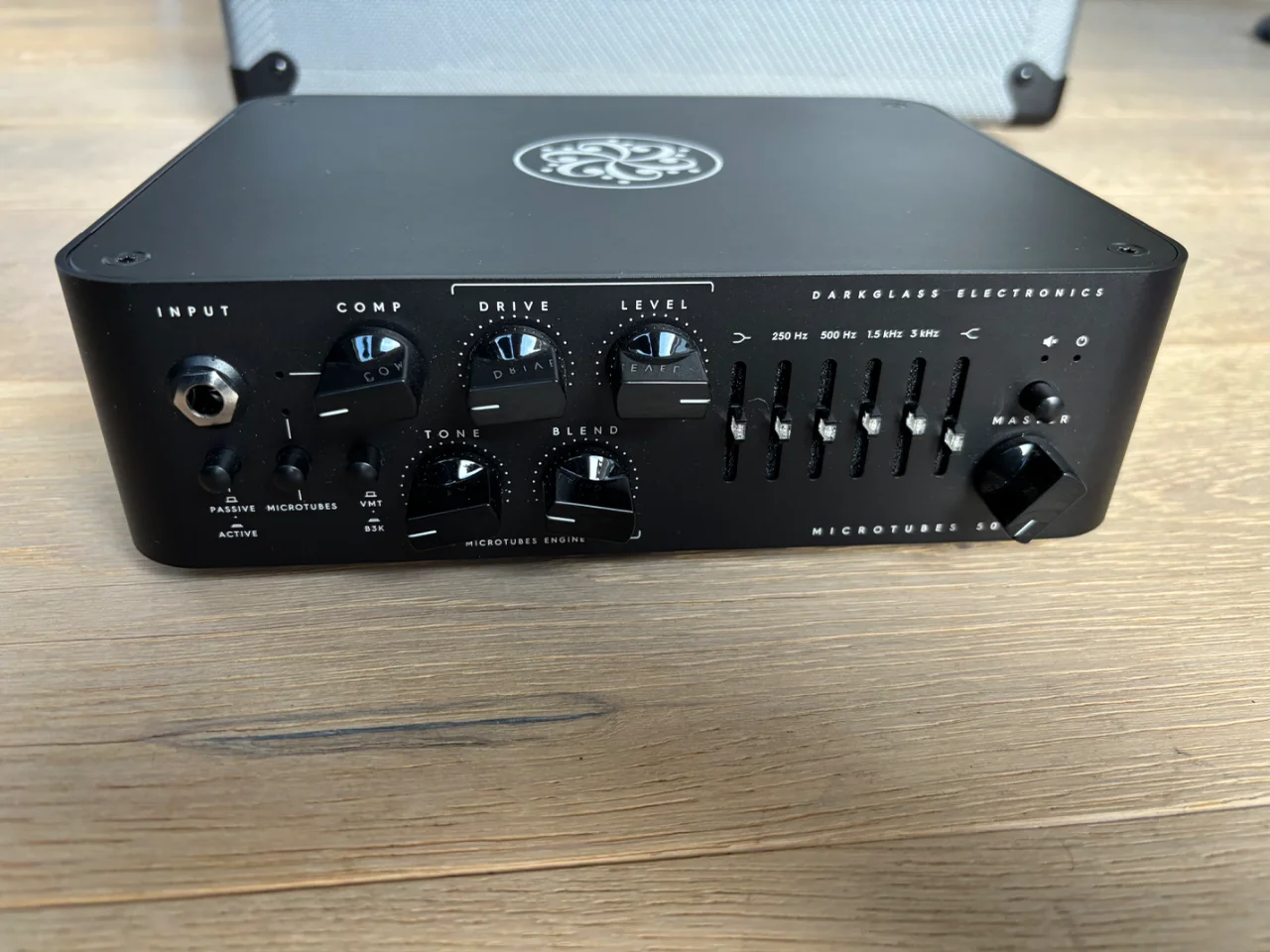 - Regler: Compressor, Drive, Level, Mod, Blend, 6-Band Graphic EQ, Master