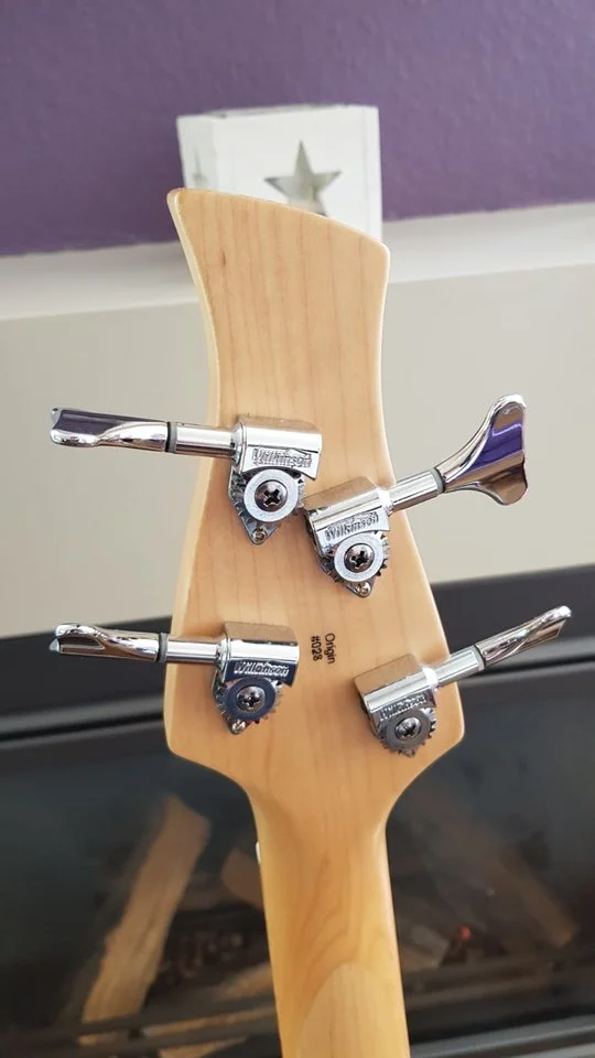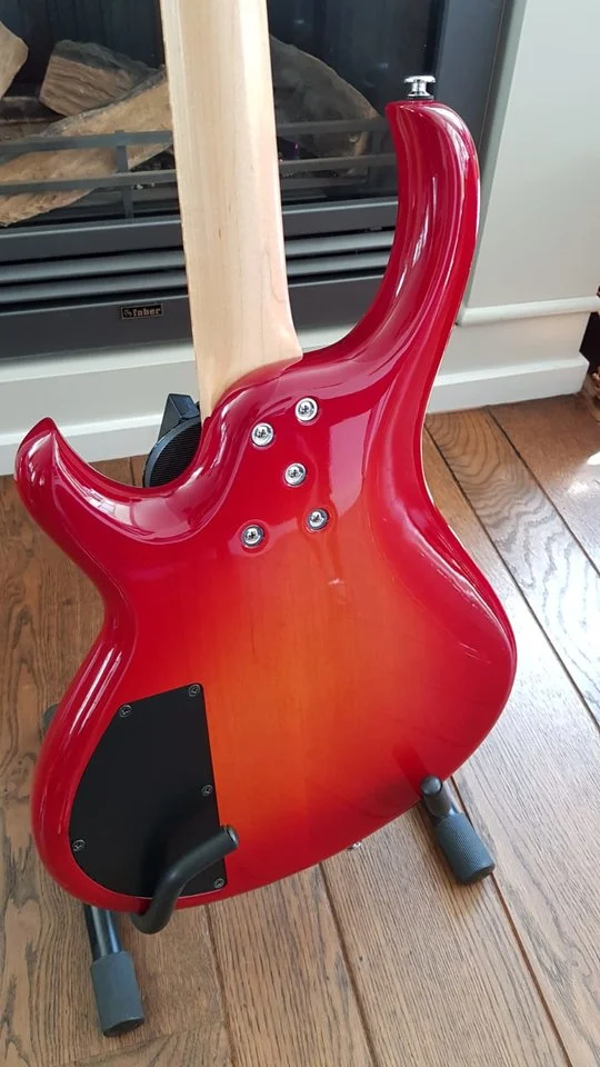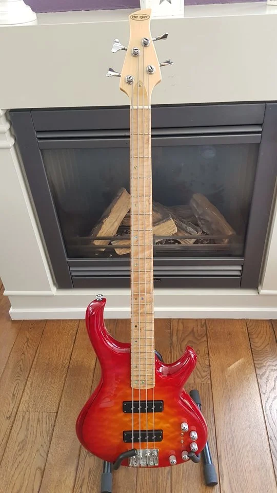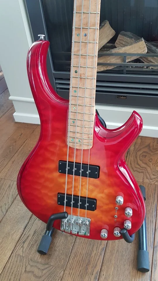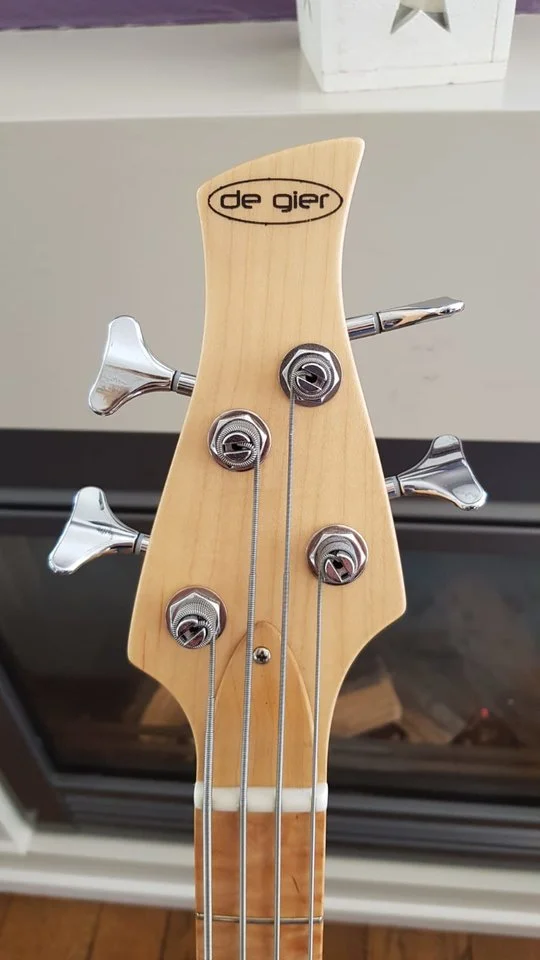Absolutely stunning and mint condition (Sander) de Gier Origin Deluxe bass. Hand made in the Netherlands. His basses are used by Marcus Miller and Richard Bona as well. Absolute top line quality. It has Nordstrand pick-ups, an Aguilar OPB-3 pre-amp, A5 quilted maple top and Wilkinson tuners. It comes with a very luxurious leather gigbag!