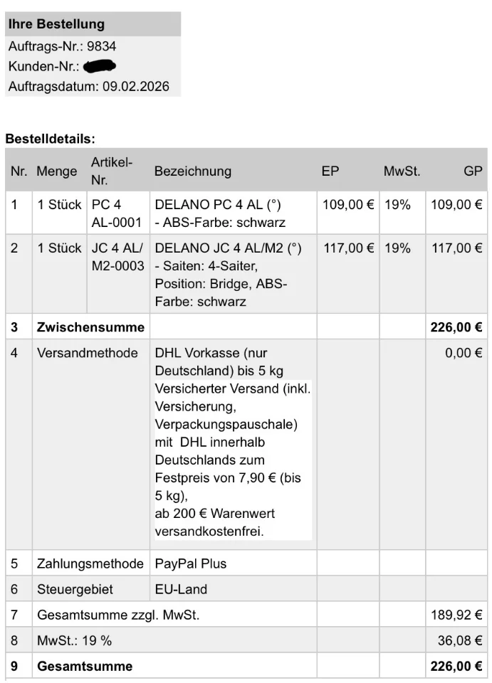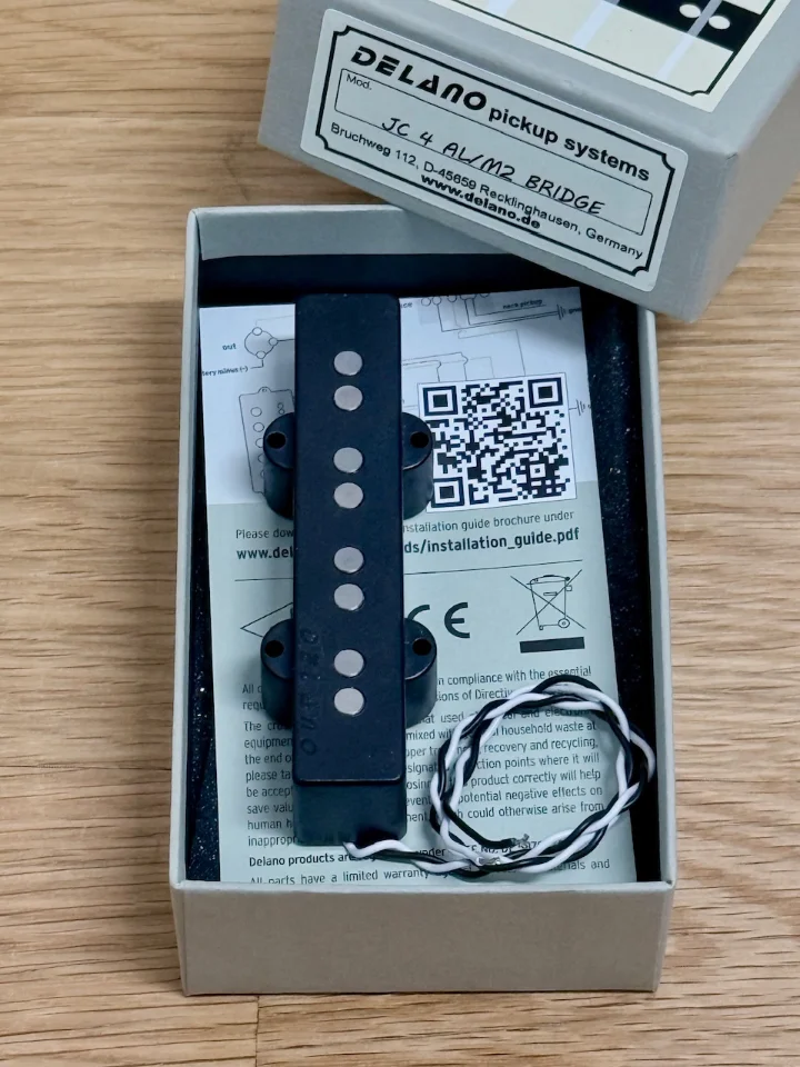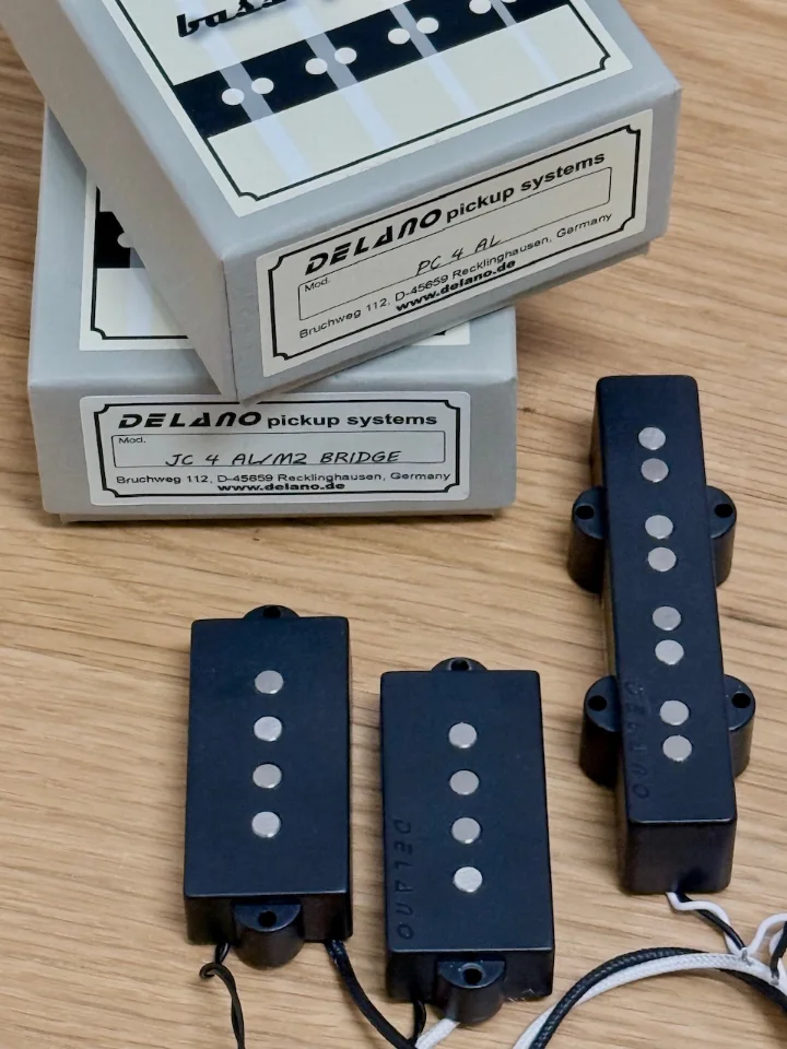 Ich verkaufe ein nahezu neues PJ Set bestehend aus einem Delano Splitcoil PC4 AL und einem brummfreien Bridge JC4 AL/M2 Coil. Beide PUs ware nur zu Testzwecken in einem PJ verbaut. Sie funktionieren einwandfrei und klingen erwartungsgemäß großartig. Das Bridgecoil Modell habe ich schon in einem Jazzbass verbaut und bin sehr begeistert. Leider hat sich das PJ Bauprojekt zerschlagen, so dass ich sie weitergeben will. Ich habe beide PUs erst im Februar 2026 bei Bassparts.de neu erworben. Versand mit DHL, versichert, ist kein Problem. Abholung natürlich auch sehr gerne.