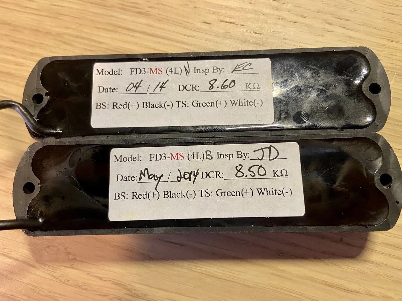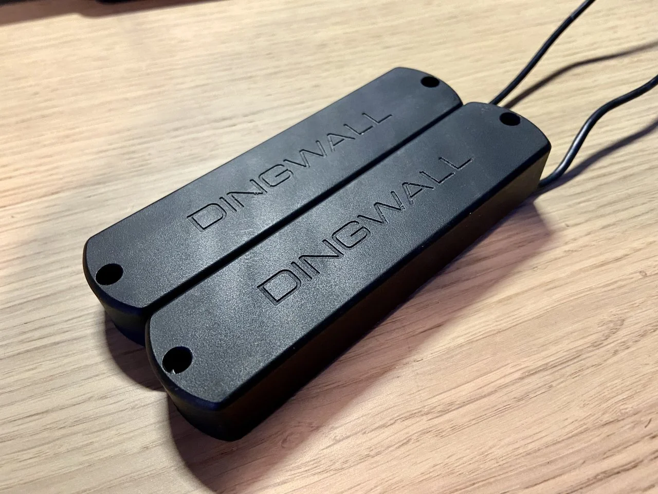 Ich biete hier ein paar Dingwall FD3-Bass Tonabnehmer an, welche ich aus einem Dingwall Super J 5-Saiter-Bass ausgebaut habe. Diese wurden durch Custom Shop Tonabnehmer ersetzt, deswegen dürfen diese hier gehen. Die Tonabnehmer lassen sich jeweils parallel als auch seriell betreiben und sind als Split Coil Tonabnehmer ausgelegt, deswegen sind sie komplett brummfrei und soundtechnisch sehr flexibel. Zustand technisch topp mit den üblichen Gebrauchsspuren.