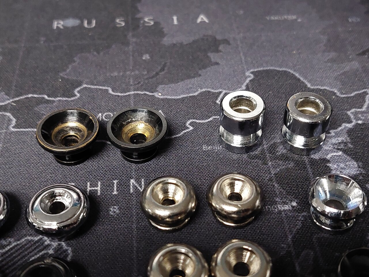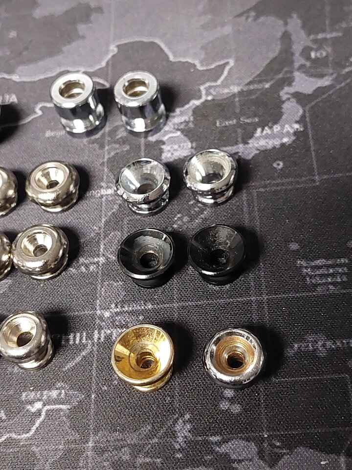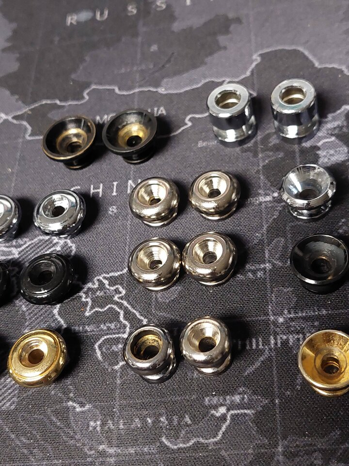 Hi, ich löse mal mein Kleinteile-Sammelsurium auf und habe einige Gurtpins zum Abgeben. Teilweise müssten darunter auch Gurtpins von MusicMan & Warwick sein. Wirklich zuordnen kann ich das aber nicht.