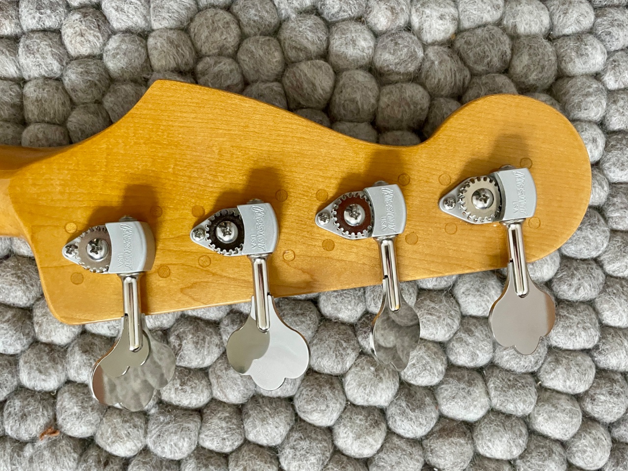 Verkaufe meinen Docwood Jaguar Style 4-Saiter Bass Medium Scale (32“) mit TV Jones Thunderblade Pickup.