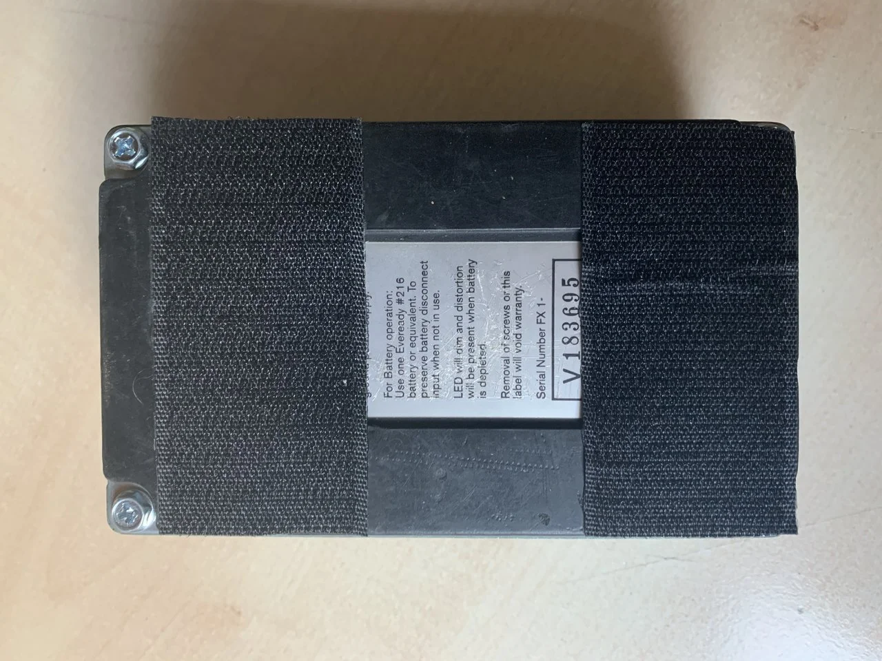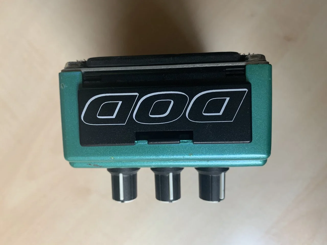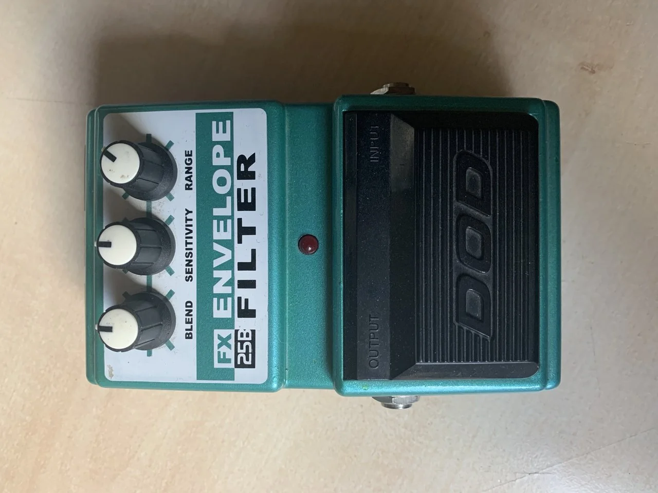 Hier wäre es ein DOD FX25B Envelope Filter. Voll funktionsfähig. Auf der Rückseite ist ein Klettband (die "harte Seite") geklebt, was sich aber ablösen lässt.