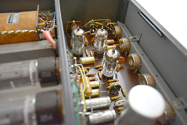 Der Amp hat im Gegensatz zu Bildern 1/2 noch die originale Netzbuchse, Powerschalter, Potiknöpfe in Grau