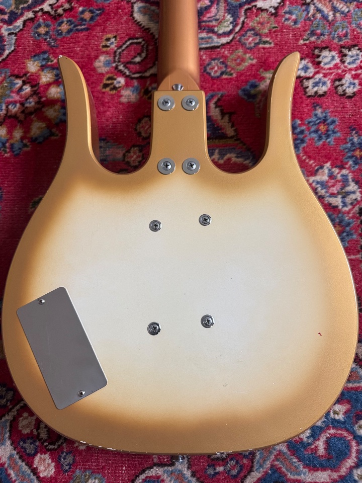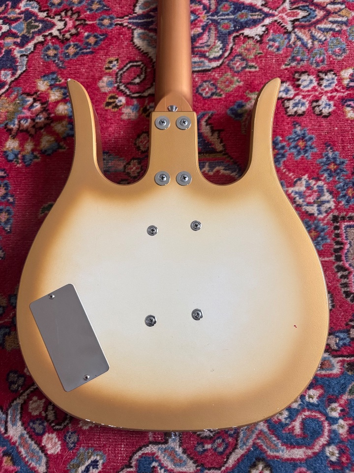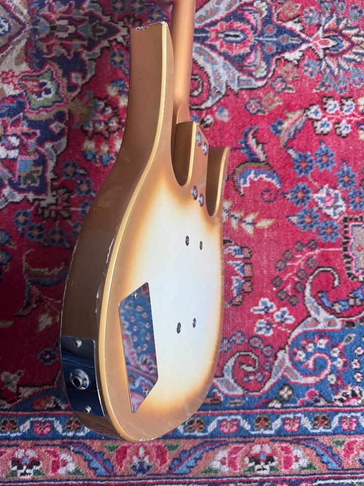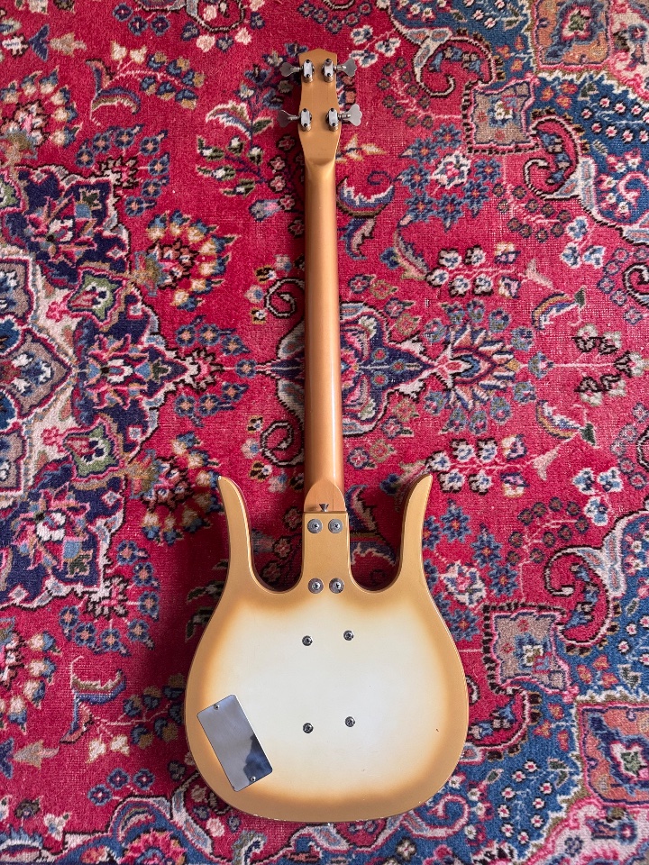 Schöner Dynelectron Long Horn Bass in der Farbe Copper Burst.