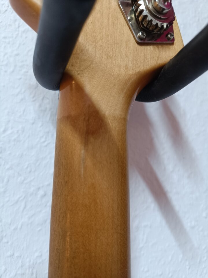 Technisch funktioniert er einwandfrei und optisch hat er so die ein oder andere Macke (siehe Bilder), die mich allerdings beim Spielen nicht beeinträchtigt haben. Auf dem letzten Bild ist eine Unebenheit am Hals vor der Kopfplatte zu sehen. Kann selbst nicht beurteilen, ob das eine geklebte Stelle ist, da ich den Bass so bereits vom Vorbesitzer erworben habe. Für mich befindet sie sich jedenfalls nicht im Griffbereich. Die Potis sind etwas leichtgängig, verstellen sich aber beim Spielen nicht.