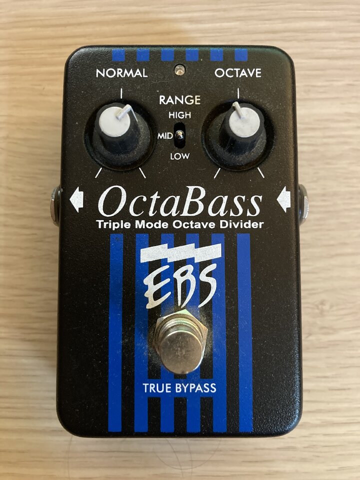 - Regler: Normal, Octave, Range (High/Mid/Low), Bypass (True Bypass)