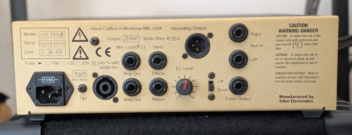Verkaufe Eden Traveler 550 Amp. Steht seit längerem bei mir rum ohne Einsatz, dager verkaufe ich den. Funktioniert alles ohne Probleme. Auf Grund des Gewichtes (fast 10 Kilo), kein Versand. Ich finde gerade keine passende stabiele Verpakung dafür. Anspielen und Testen mit Terminabsprache möglich.