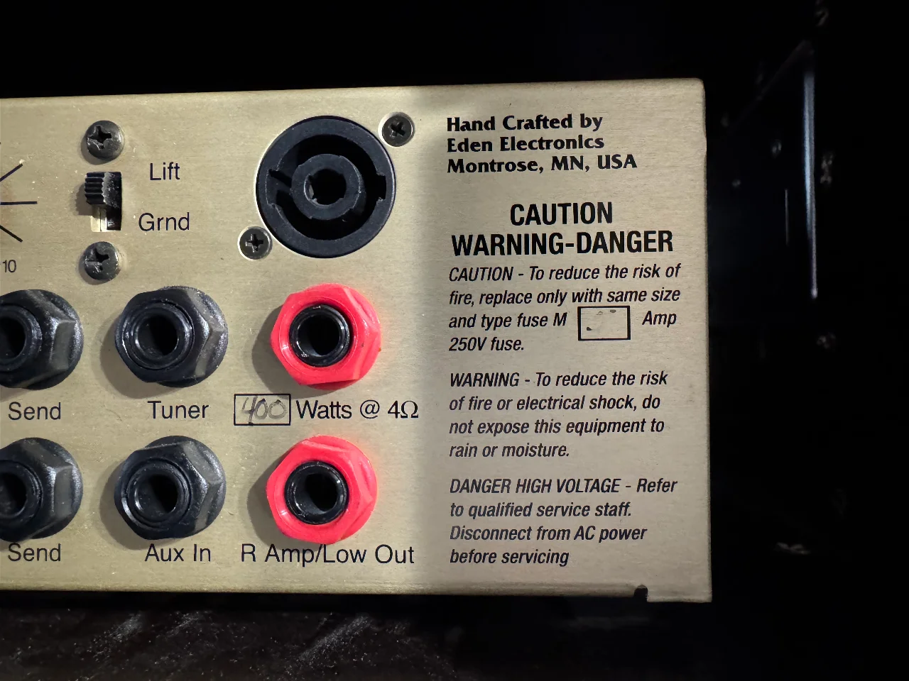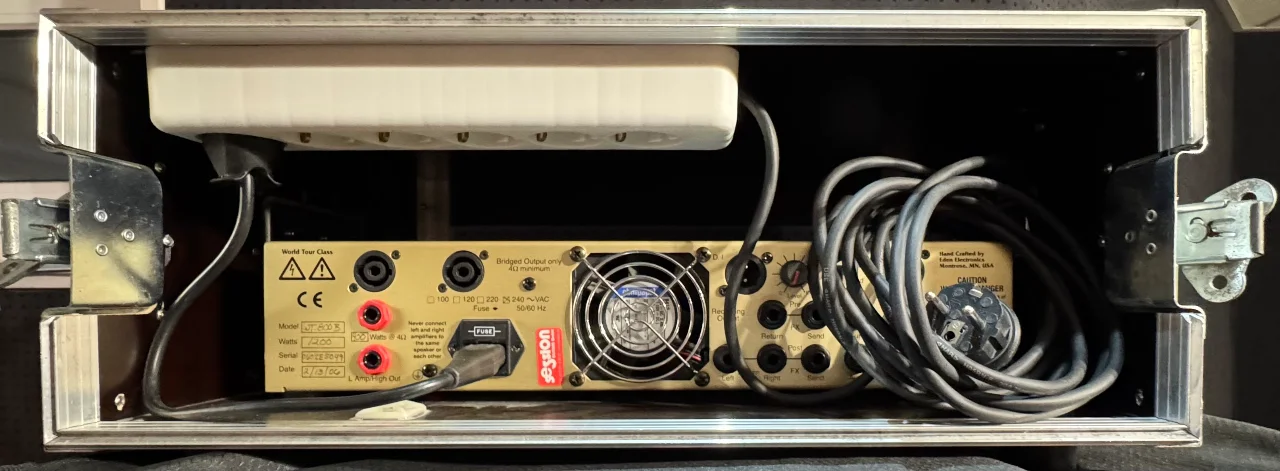 Moinsen, ich biete hier einen der letzten noch in den USA - gefertigten Eden WT 800 Amps in sehr gepflegtem Zustand an. Kenner wissen bestimmt um die Vorzüge und die Vielseitigkeit dieses Amps mit zwei 400W MOSFET Endstufen, im Netz gibt es zahllose Tests und auch Datenblätter. Der Amp war immer gut geschützt eingebaut in ein 4 HE Rack, im Rack befindet sich sehr praktisch eine fest eingebaute 5-fach Steckdose mit fest angeschlossenem, 5m langen Anschlusskabel. Der Amp sowie das Rack befinden sich in einem tadellosen, gepflegten Zustand. Die LED´s des EQ (waren immer "AN" und dienen sonst wohl keiner sinnvollen Funktion), die haben mich immer nur geblendet und beim Ablesen der EQ-Einstellungen behindert. Deshalb habe ich sie irgendwann bei Session in Walldorf im Zuge einer Wartung ablöten lassen, das kann jederzeit wieder in den Original Zustand zurückgebaut werden. Ansonsten: