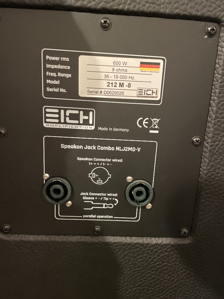 Ich verkaufe eine meiner Eich 212M-8 Boxen im nahezu neuwertigem Zustand, inkl. passender Hülle von Eich (ebenfalls nahezu neuwertig).