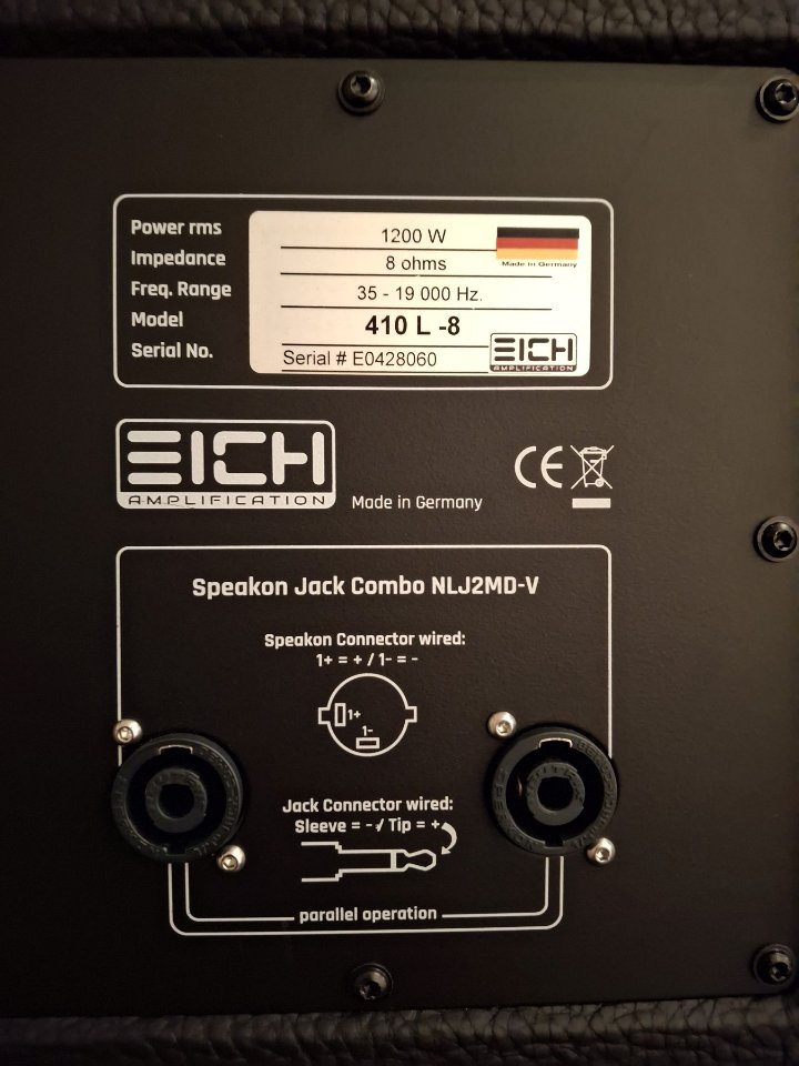 Ich biete meine Bassboxen von Eich Amplification aus der 2019er Produktion zum Verkauf an da ich auf kleineres Equipment von Eich zum üben umgestellt habe.