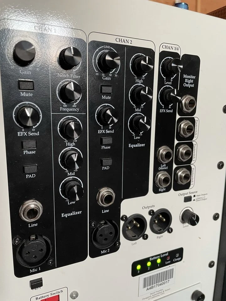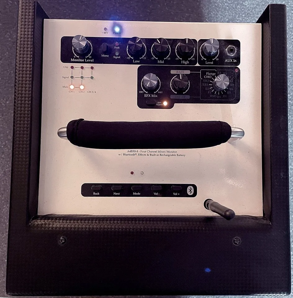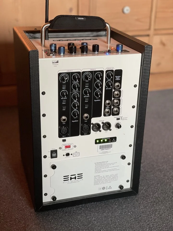 Hier biete ich meinen kleinen "großen" ELITE ACOUSTICS Akustik Combo A4BR8-8 mit leistungsfähigem Akku-Betrieb an. Das gute Stück zählt zum Feinsten im Bereich der Akustikgitarren- und Gesang-Verstärkung und wird in zahlreichen Reviews als "Referenzklasse" beschrieben.