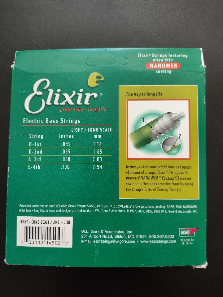 Biete einen Longscale Satz Acoustic Bass Strings 45-100 Elixir 14502 Nanoweb Light an.