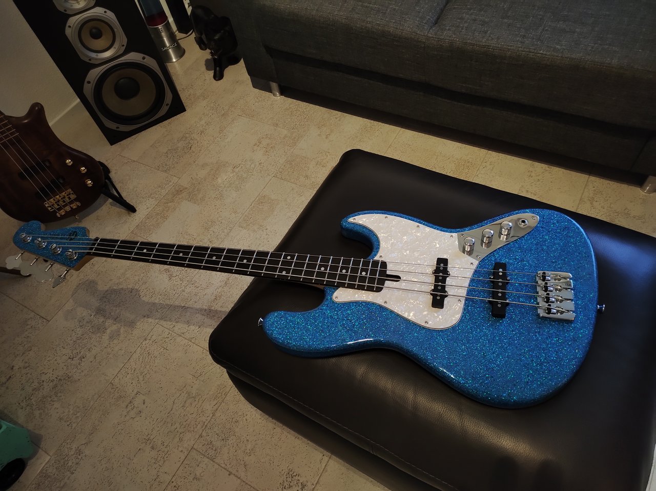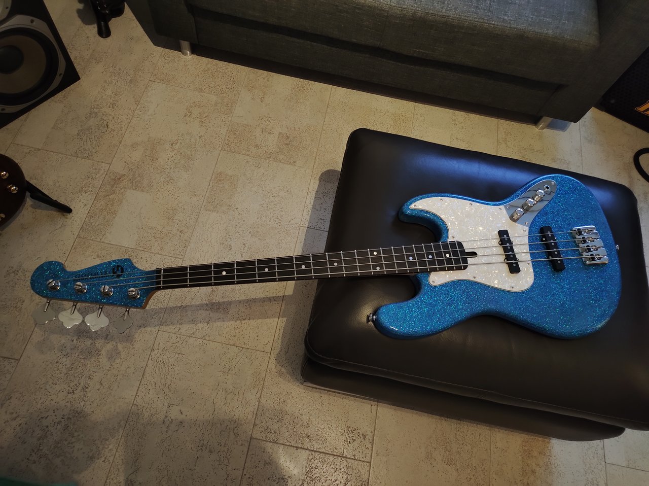 Verkaufe aus meiner Sammlung, einen schönen Elwood 4 Saiter Coustom Jazz Bass.