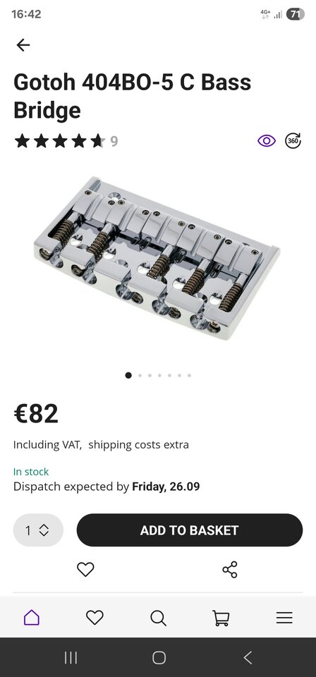 Gotoh ...5 strings bridge, new, 1 screw miss - 50€
