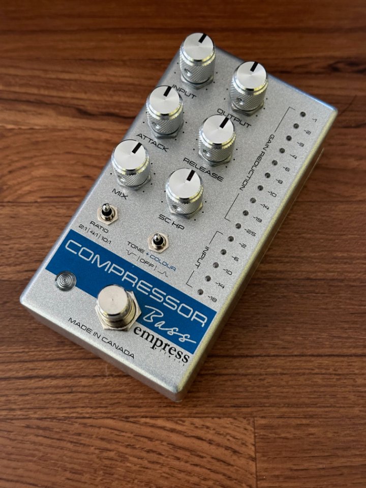 For sale: an Empress Effects Bass Compressor in excellent condition, with original packaging and rubber feet. The compressor works perfectly, shows only the slightest signs of use, and has Velcro on the bottom. The switches and pots are silky smooth and silent.