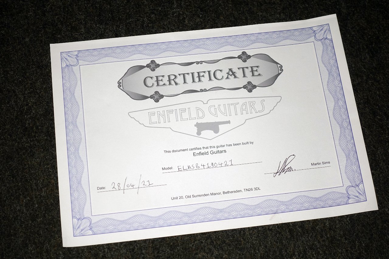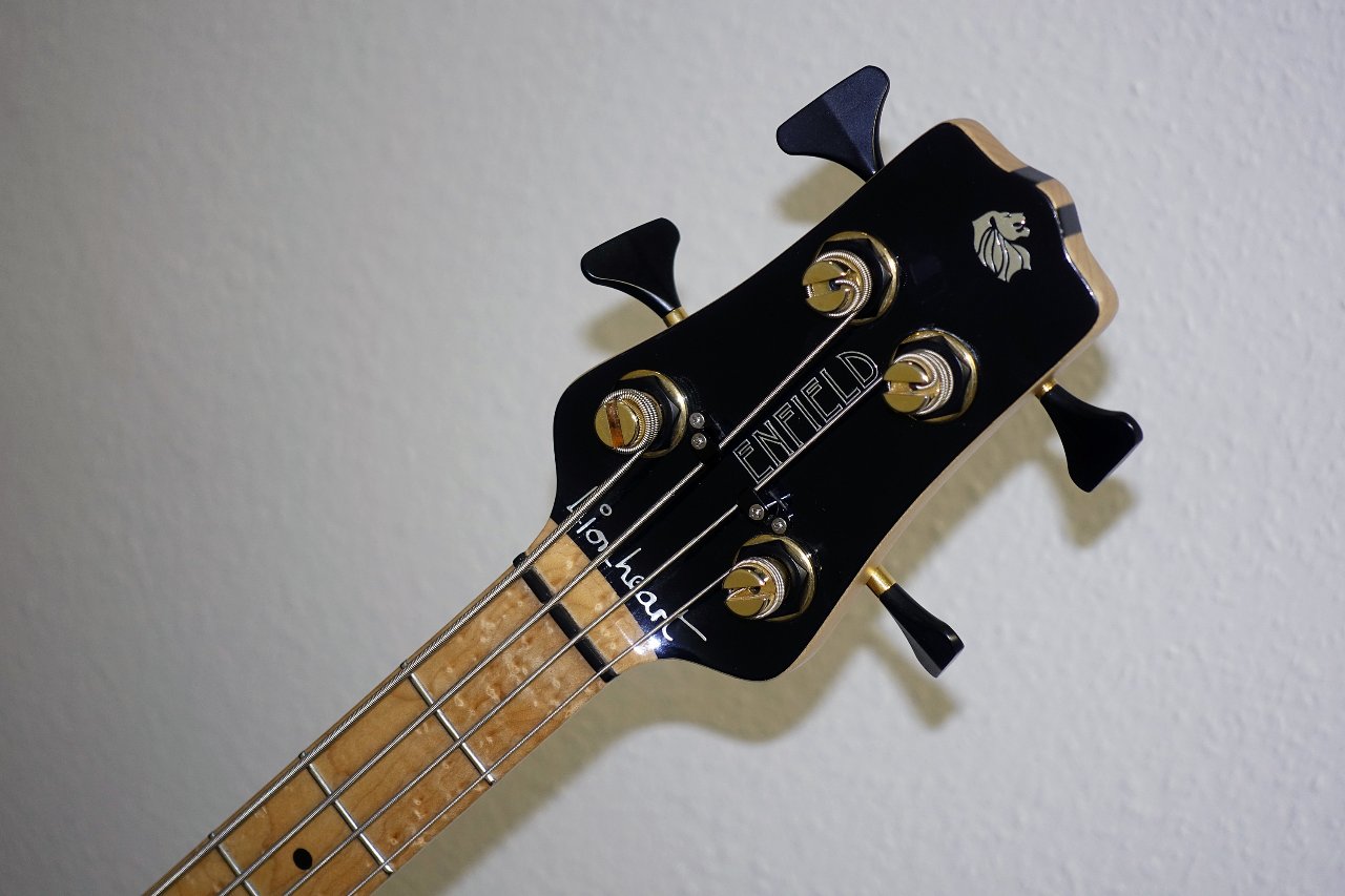 Der Enfield Lionheart Air ist ein viersaitiger, handgefertigter E-Bass aus der Werkstatt von Martin Sims (Sims Guitar Works) in Kent (England). Die Instrumente von Sims sind bekannt und berühmt für ihre Super-Quad-Pickups, die eine Vielzahl von Klangoptionen ermöglichen. Wenn man Google nach "Enfield Lionheart" befragt, findet man viele Informationen, Bewertungen und einige sehr aussagekräftige Videos.