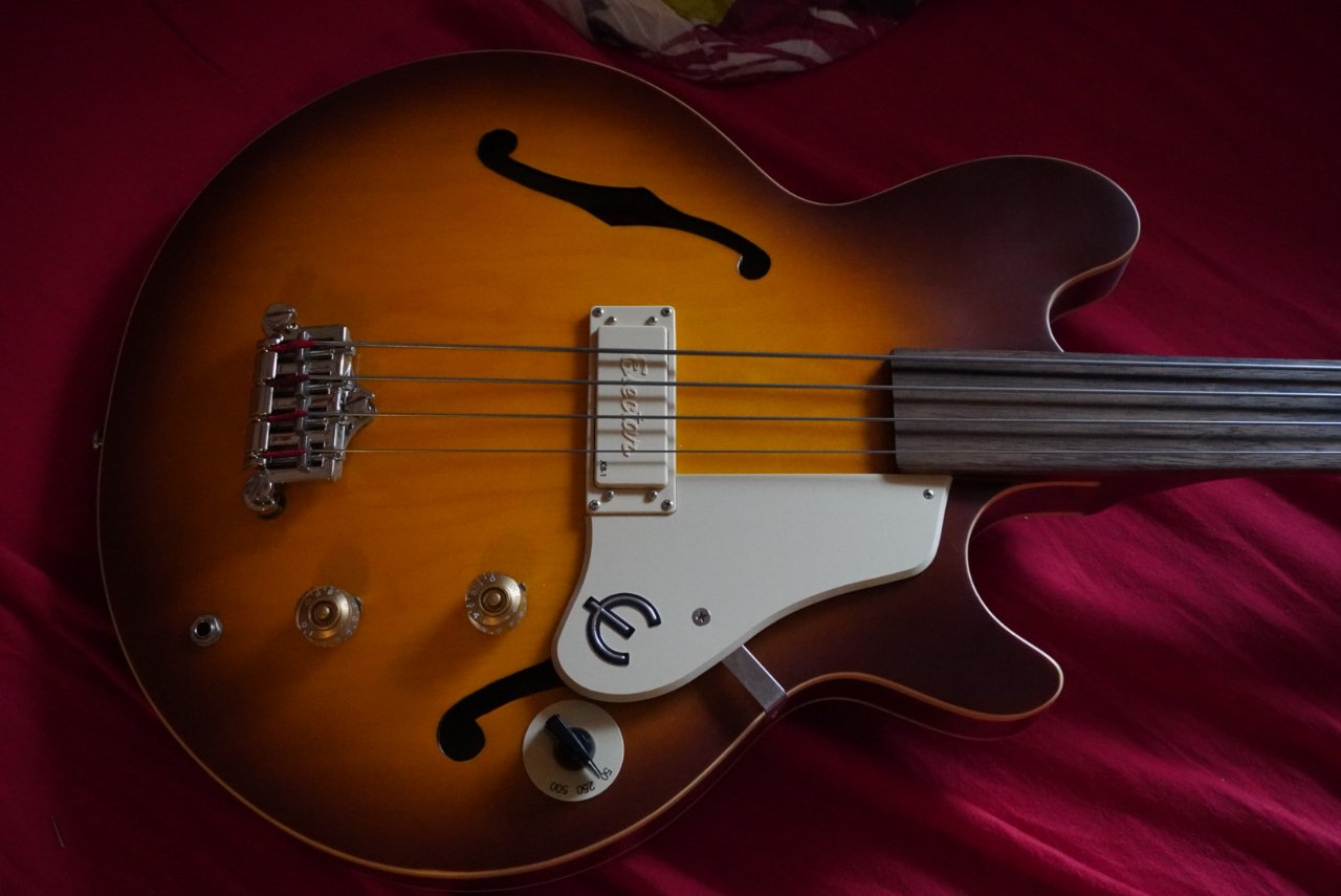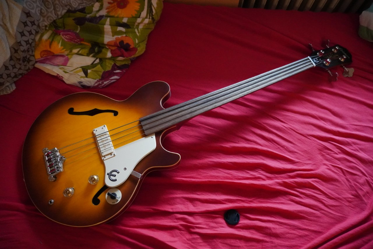 Verkaufe wenig gebrauchten Epiphone Jack Casady Fretless Bass Aged Royal Tan.