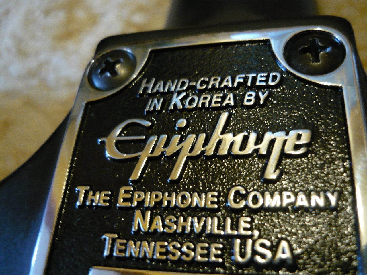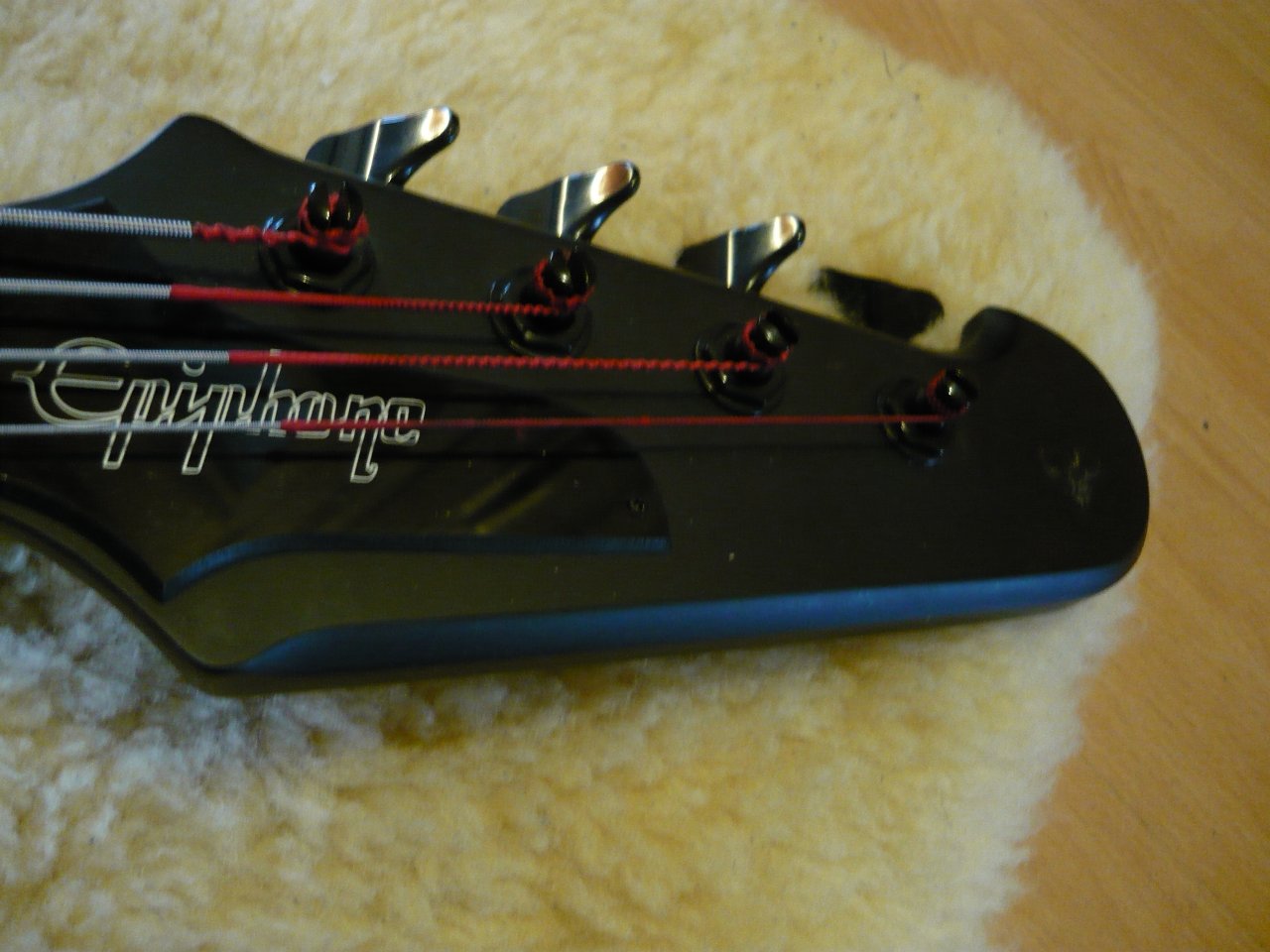Knapp 20 Jahre alt, aber eher geringe Gebrauchsspuren, paar kleine Kratzer hier und da, Klebereste am Headstock (hat mich nicht genug gestört, um zu versuchen, das wegzumachen).