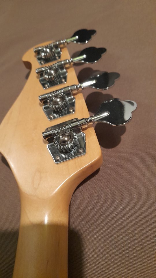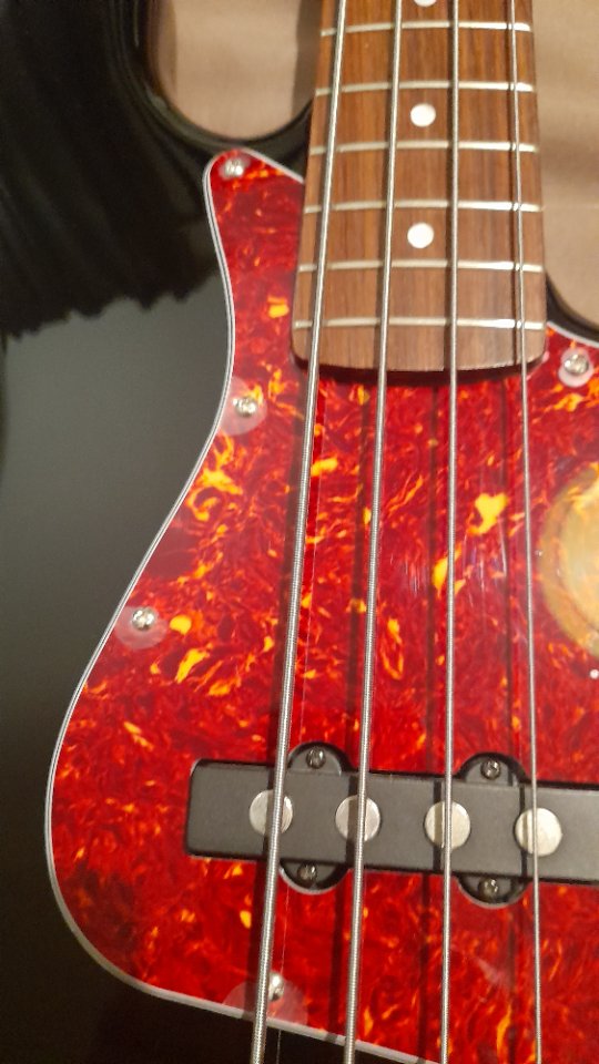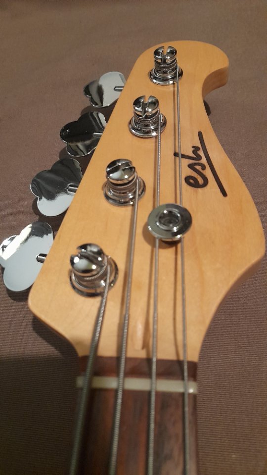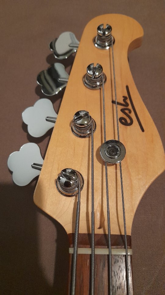 Esh Bass Jazzbass ähnlich Poseidon, habe ich vor einigen Jahre aus einem Nachlass erstanden, kaum benutzt, super Sound, passiv. Dürfte aus den 90er Jahren, gute Esh-Ära, stammen, ähnelt dem Poseidon, eventuell ein Unikat, Fender High Mass Bridge habe ich nachrüsten lassen, Gitarrenbauer Karsten Helmers aus Delmenhorst hat diesen schönen, gut bespielbaren Bass noch einmal fein eingestellt, Schlagbrett montiert und einen Knochensattel eingebaut. Klingt und spielt sich phantastisch. Sehr präsente Tonabnehmer, Rastender PU-Wahlschalter.