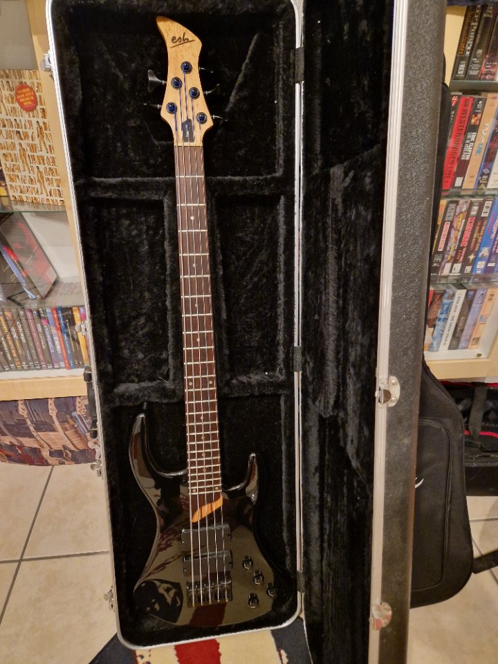 Biete hier einen ESH Sovereign in einem sehr schönen Schwarz an, der Bass befindet sich in einem einwandfreiem Original Zustand. Die ESH - Tronik arbeitet einwandfrei, der Hals ist grade und der Halsstab funktioniert, Bünde weisen keine Dellen auf. Am Hals wurde mal vor langerzeit eine reparatur gemacht, hält aber alles einwandfrei. War nicht gebrochen.