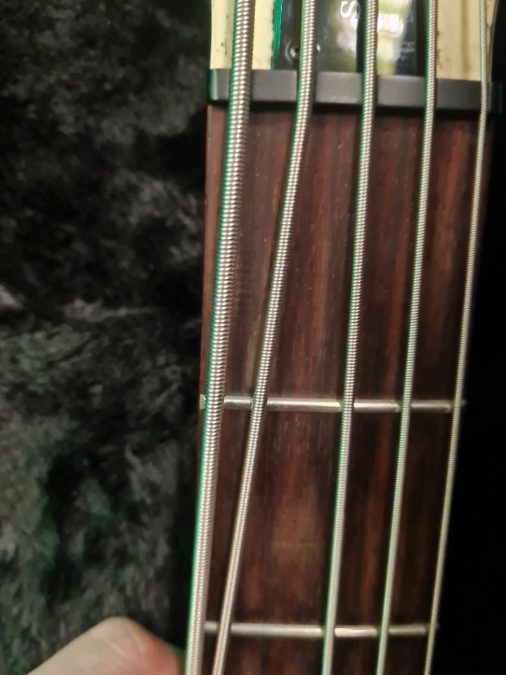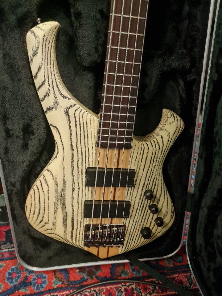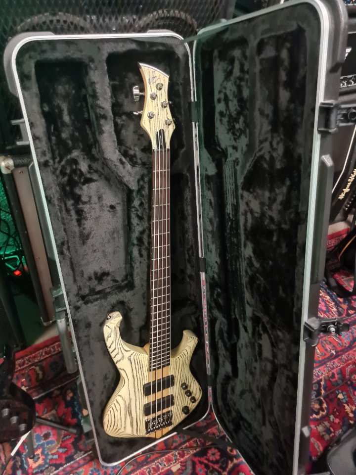 Geiles Gerät, aber da ich und 5 Saiter in diesem Leben keine Freunde mehr werden (und ich noch n Esh 4 Saiter habe) kann der weiter ziehen. Kommt im sehr ordentlichen SKB ABS-Koffer, dem leider die Schlüssel fehlen.