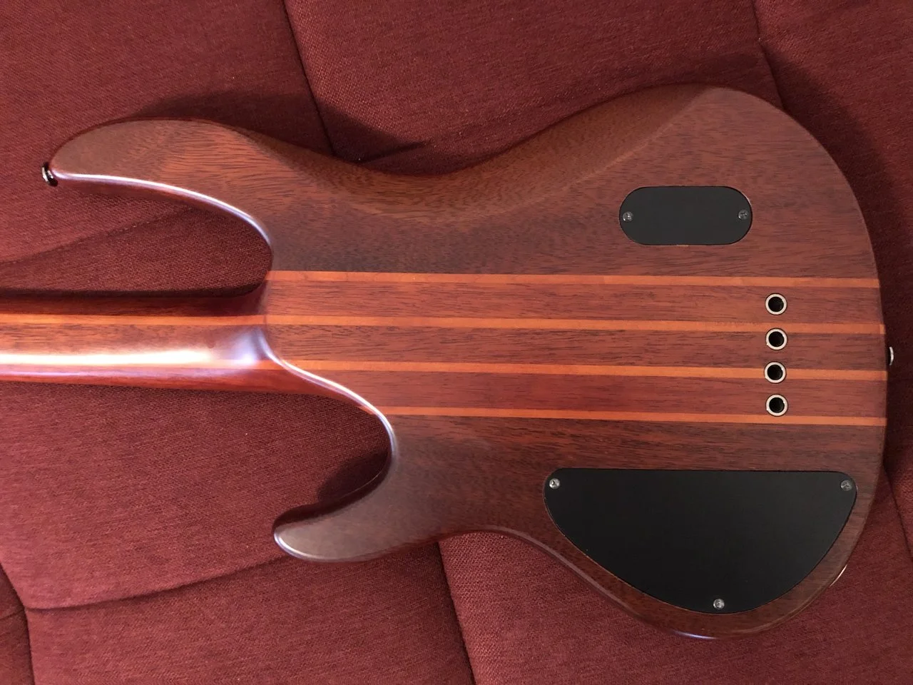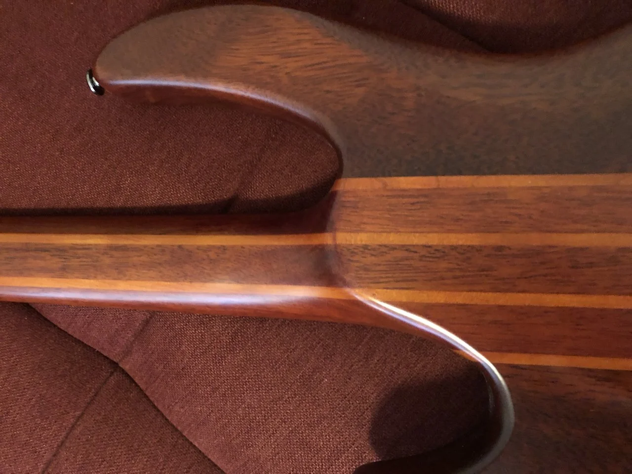 Hals: Ahorn und Mahagoni, 5-streifig (!), 24 XJ-Bünde für schnelles Spiel und leichtes Saitenziehen. "Extra Thin U" Halsprofil. Durchgehende Halskonstruktion. Dadurch ein sehr gutes Sustain, und ein superleichter Zugang zu höheren Bünden.