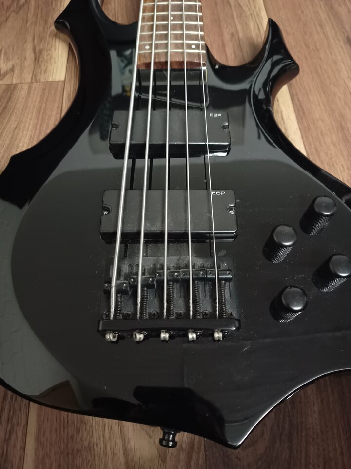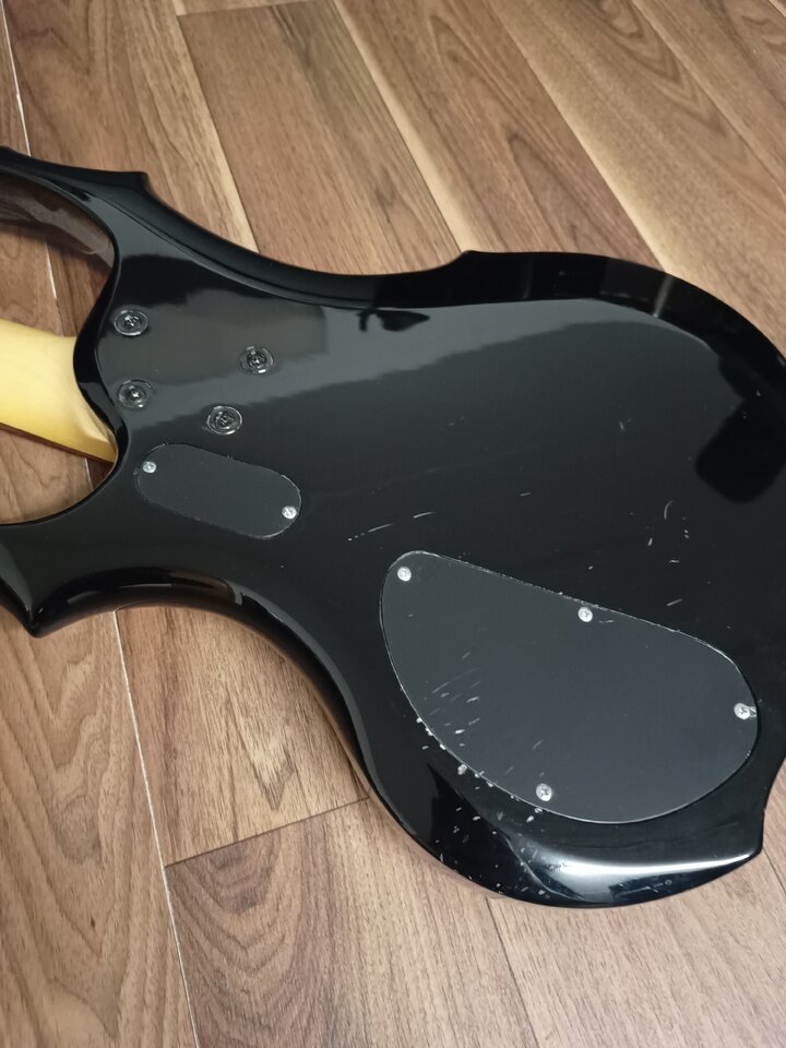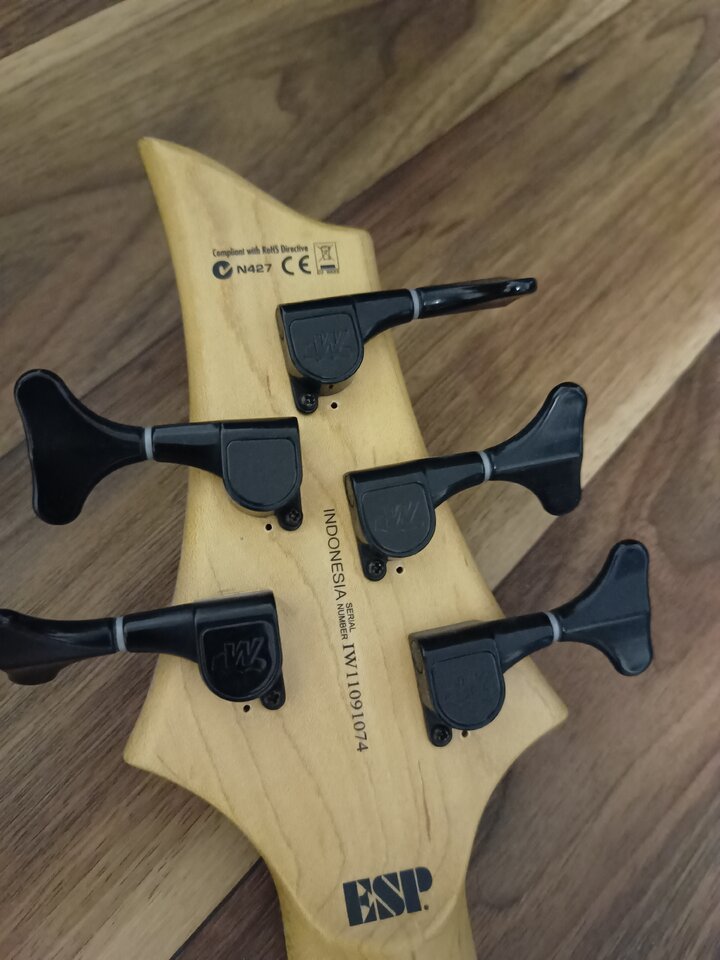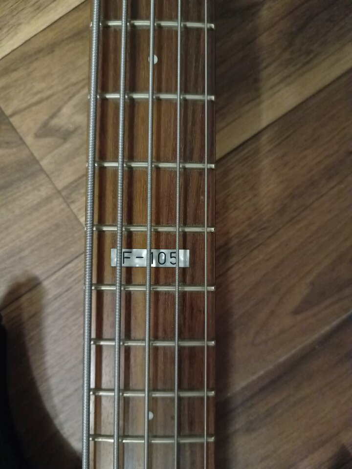 Der Bass ist im guten Zustand, abgesehen von Gurtkratzern auf der Rückseite (siehe Bilder). Bridge und Mechaniken wurden durch gleichwertige in schwarzer Optik ersetzt (siehe Bilder, am Kopf sind daher kleine Bohrlöcher der Originalteile). Die Ursprünglichen Teile lege ich auf Wunsch bei oder Baue diese auch gern wieder ein.