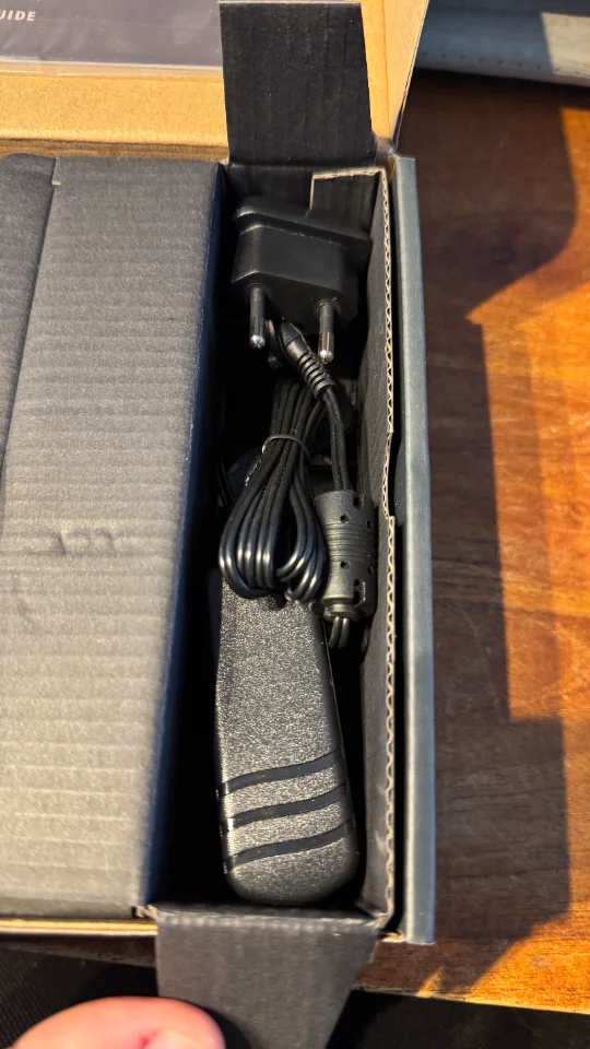 Naturally, it comes in the original packaging, including the power supply and manual. There is clean (male) velcro applied to the bottom.