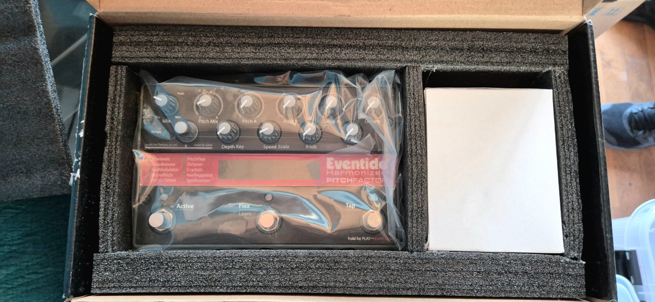 Ein befreundeter Bassist ist verstorben, ich helfe seiner Frau seine Sammlung zu verkaufen. Hier bieten wir unbenutztes Eventide Pitchfactor.