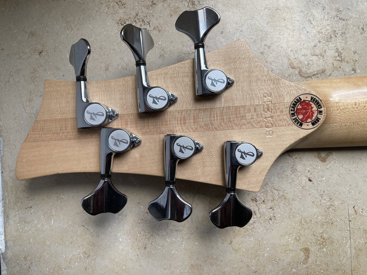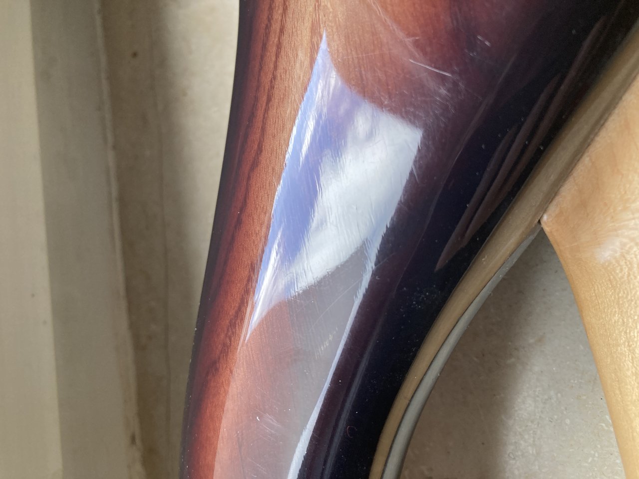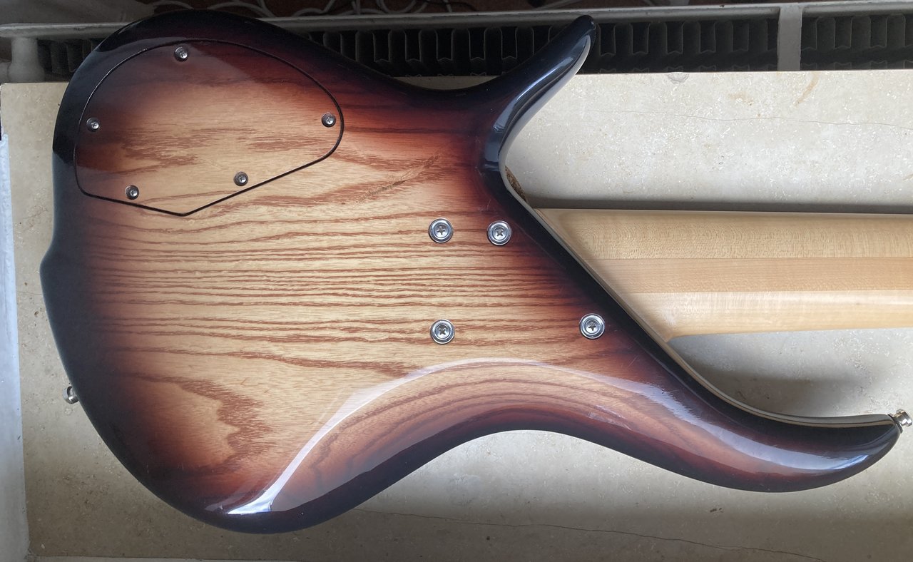 Das Instrument ist in einem super Zustand, hier und da ein paar Kratzerchen, aber nichts, was auffällig ist. Dabei ist noch ein Gigbag von F-Bass, bei dem ein Gurt bereits gerissen ist und mit Gaffa repariert wurde, nicht schön, aber für den Versand völlig ausreichend.