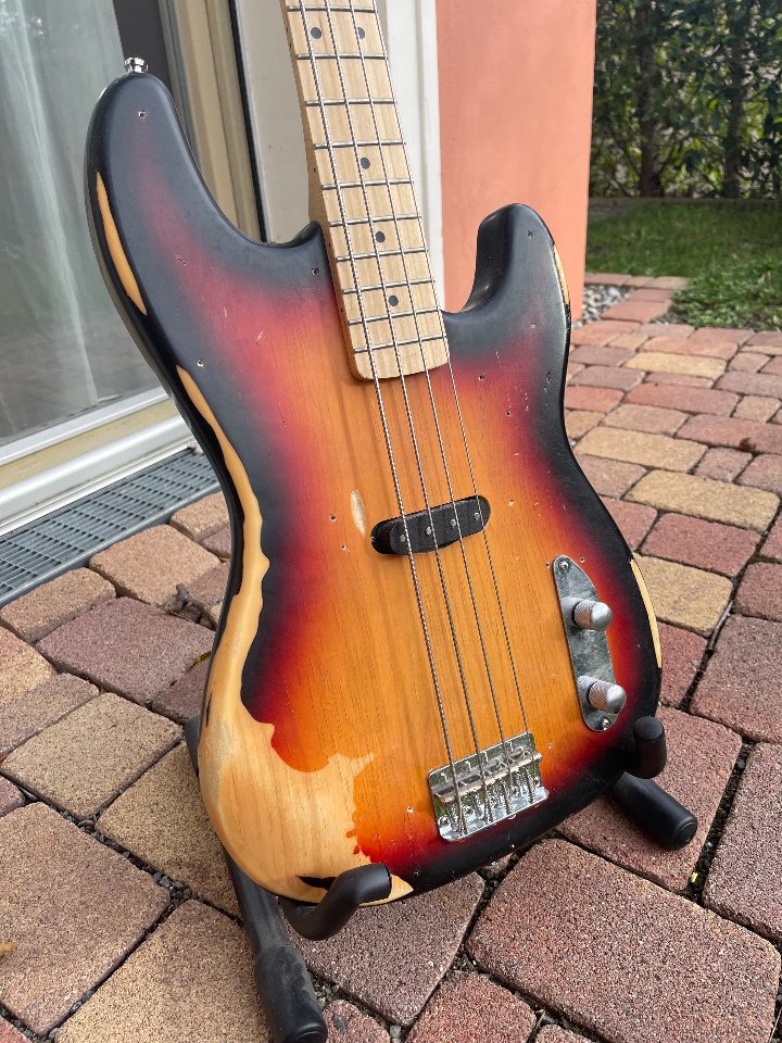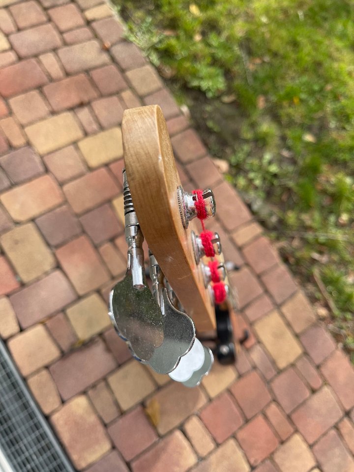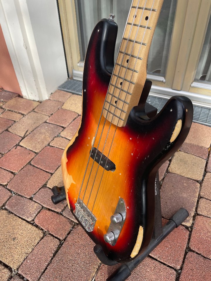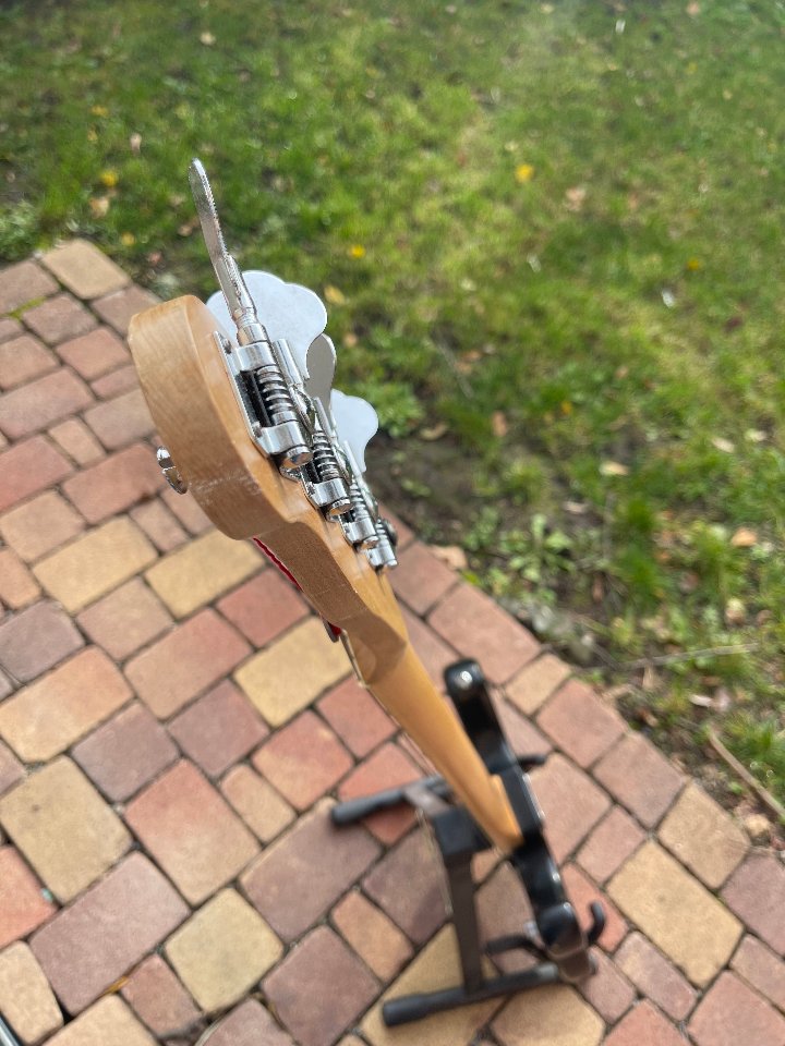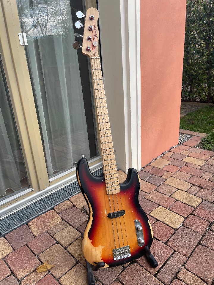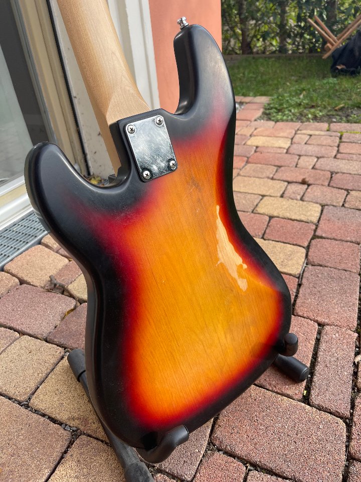 Der Vorbesitzer hat schon Arbeit in den Bass gesteckt, ich habe den Bass noch etwas mehr angeschliffen und den Klarlack abgeschliffen. Sieht super aus, ist aber sicher nicht perfekt.