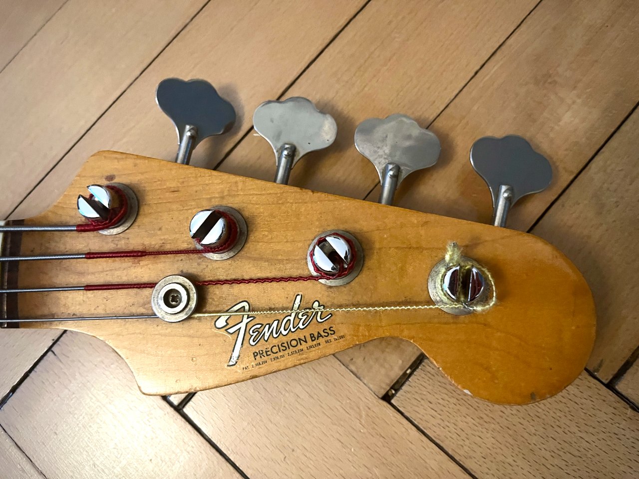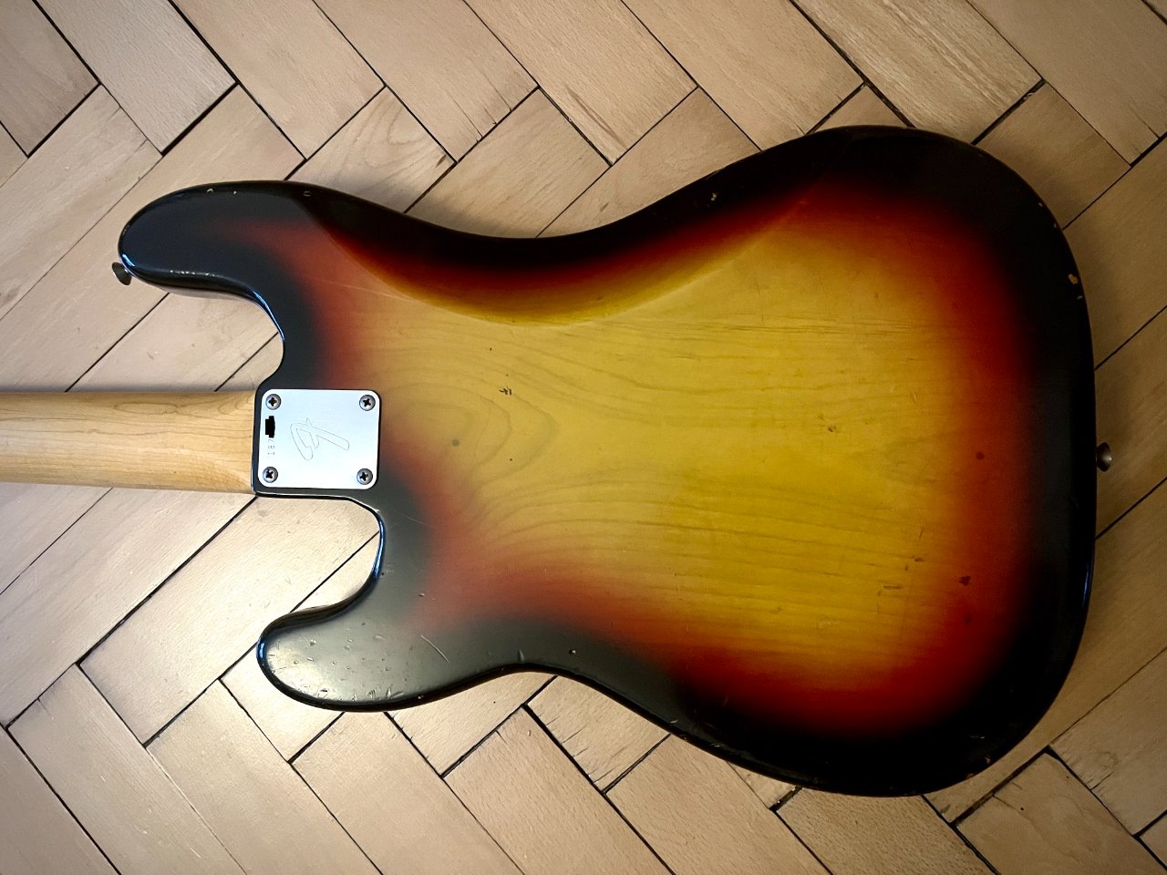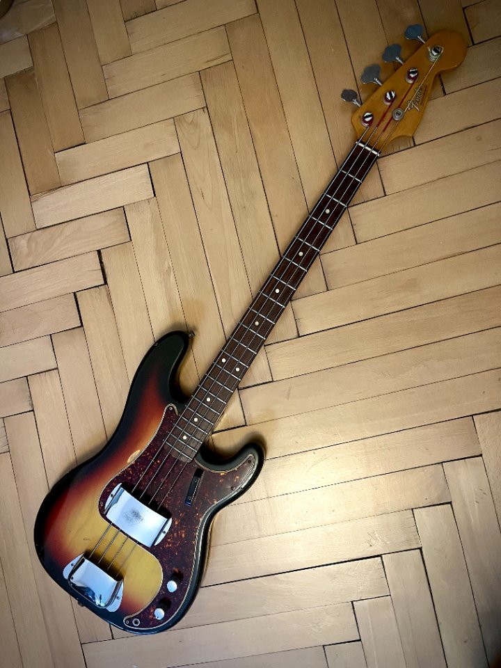 zum Verkauf steht dieser Fender Precision Bass aus 1966. Er ist nicht meiner, ich helfe nur einem Bekannten, dessen Vater das Instrument gehörte. Es ist alles original und für sein Alter ist er in sehr gutem Zustand... der Lack auf der Rückseite des Halses ist an einigen Stellen schon gut abgenützt, was ein angenehmes Spielgefühl mit sich bringt. Der Hals ist gerade und spielt sich sehr leicht. Neckstamp ist Dec 66. Es sind Roundwound Saiten drauf, die G-Saite wurde offenbar irgendwann ausgetauscht. Der Bass hat einen satten, ausgewogenen Sound übers ganze Griffbrett. Gewicht: ca 4,1 kg