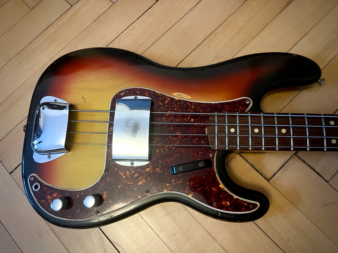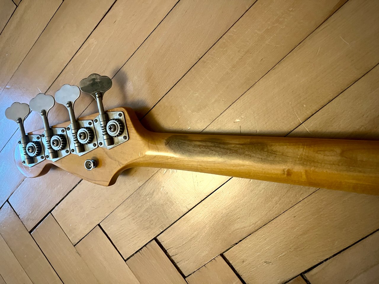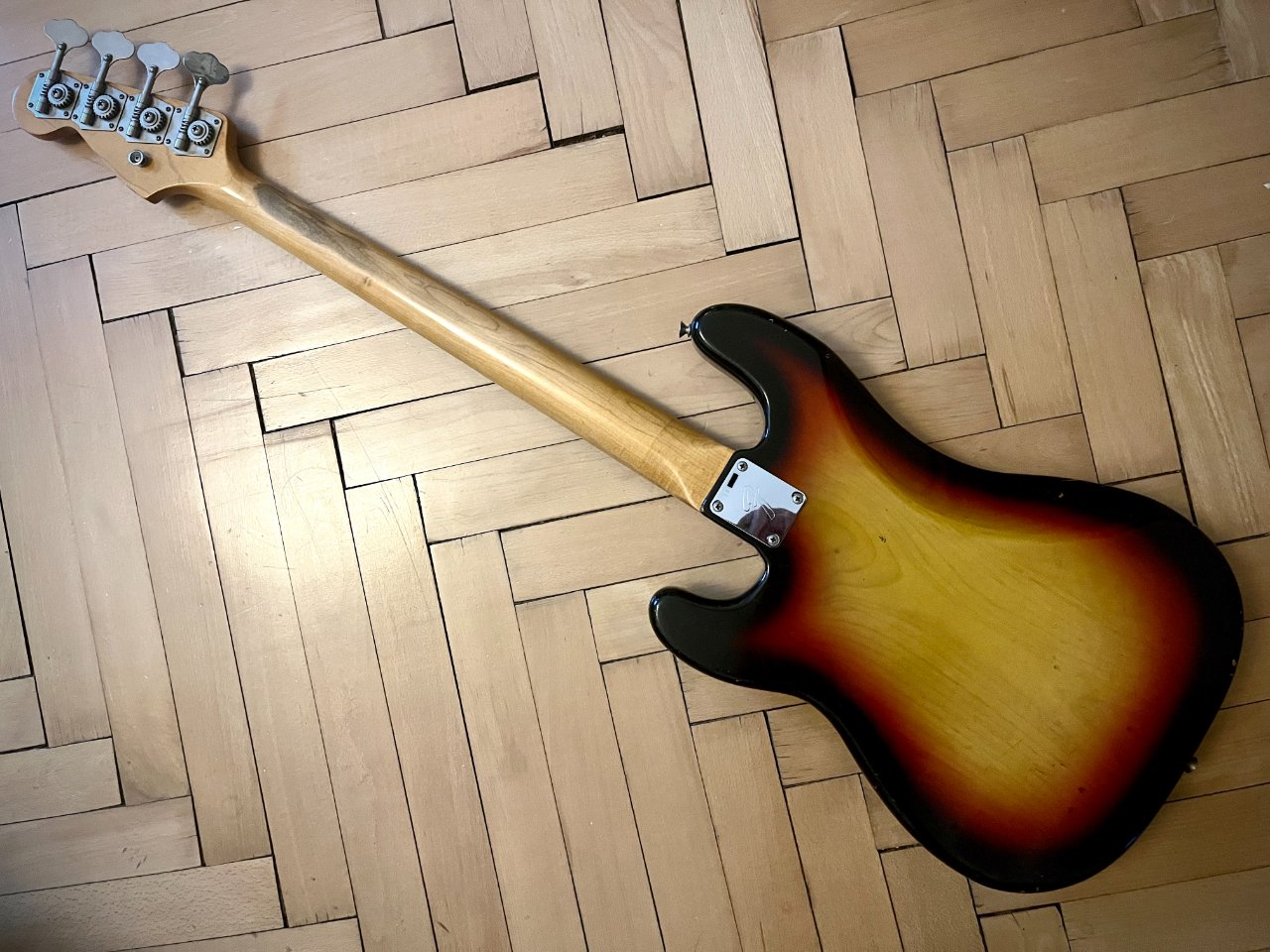 zum Verkauf steht dieser Fender Precision Bass aus 1966. Er ist nicht meiner, ich helfe nur einem Bekannten, dessen Vater das Instrument gehörte. Es ist alles original und für sein Alter ist er in sehr gutem Zustand... der Lack auf der Rückseite des Halses ist an einigen Stellen schon gut abgenützt, was ein angenehmes Spielgefühl mit sich bringt. Der Hals ist gerade und spielt sich sehr leicht. Neckstamp ist Dec 66. Es sind Roundwound Saiten drauf, die G-Saite wurde offenbar irgendwann ausgetauscht. Der Bass hat einen satten, ausgewogenen Sound übers ganze Griffbrett. Gewicht: ca 4,1 kg