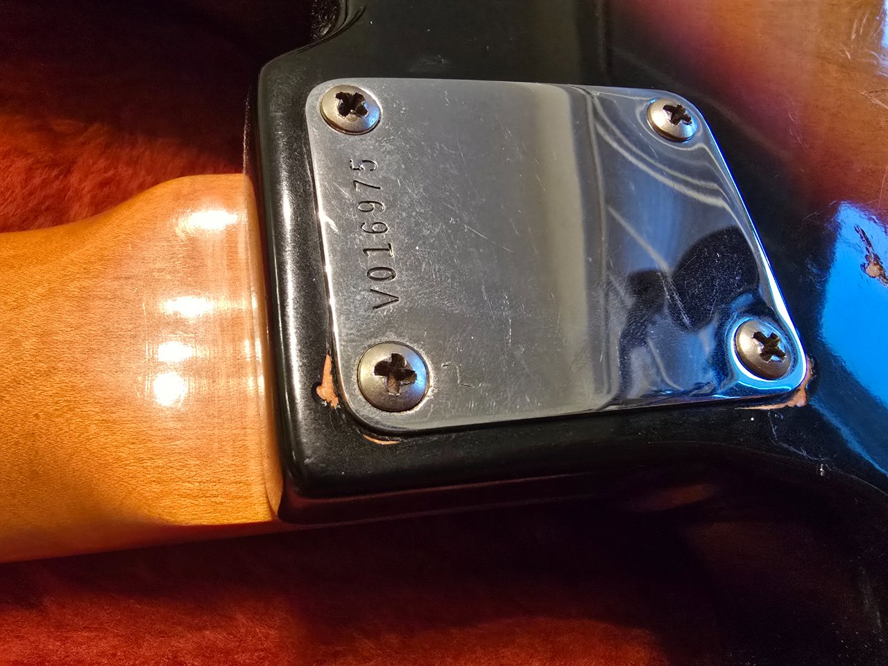 - Eine Schraube am Pickguard könnte bei Bedarf mal erneuert werden, Bünde und Bespielbarkeit ansonsten super