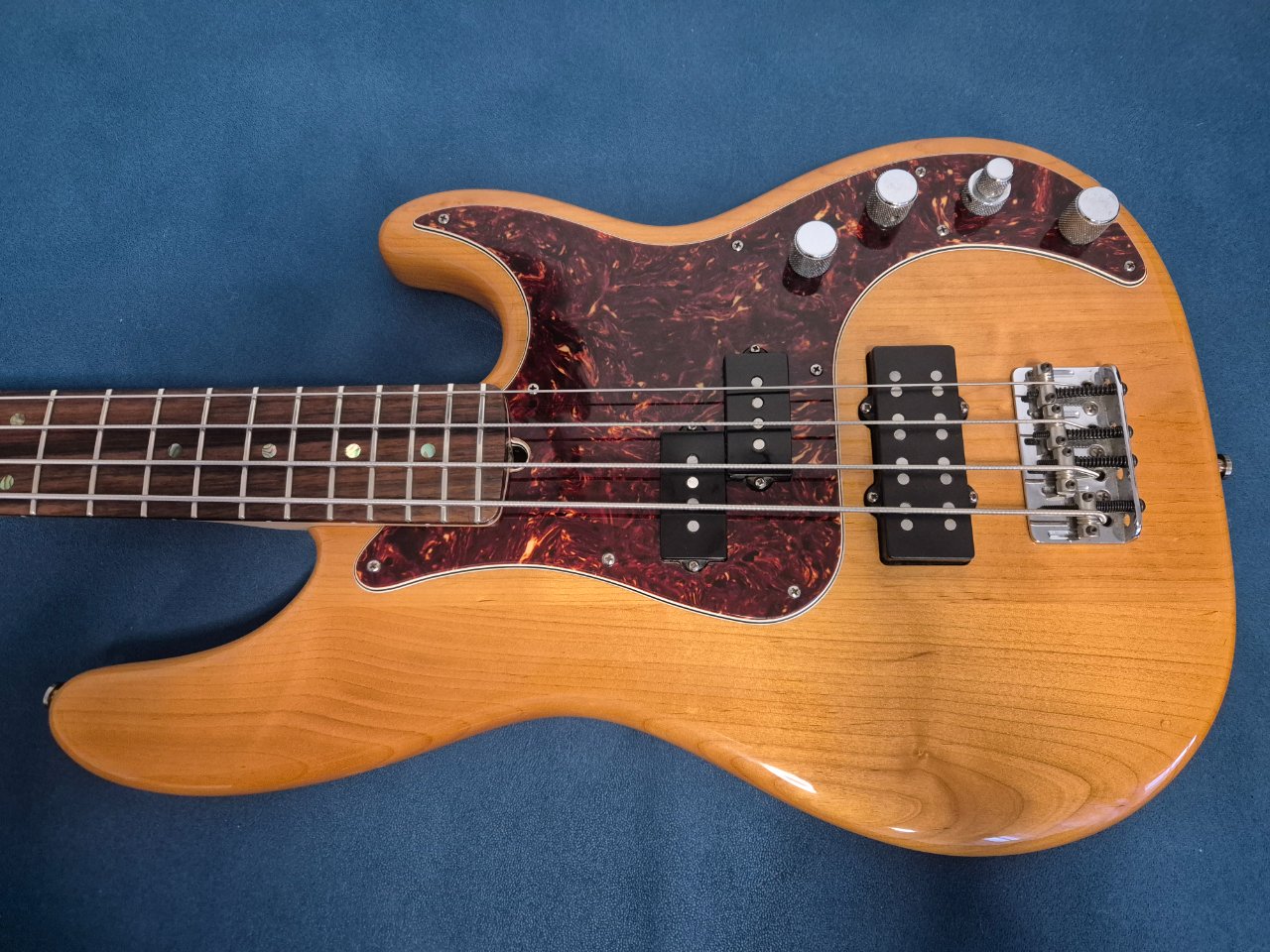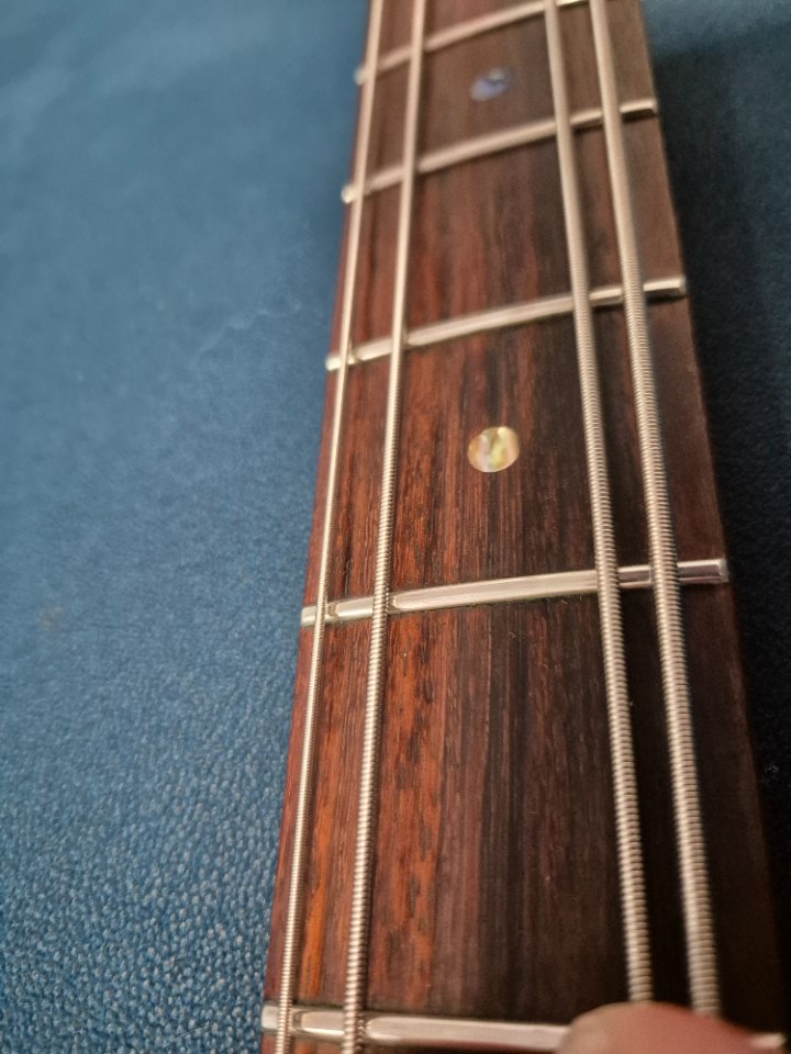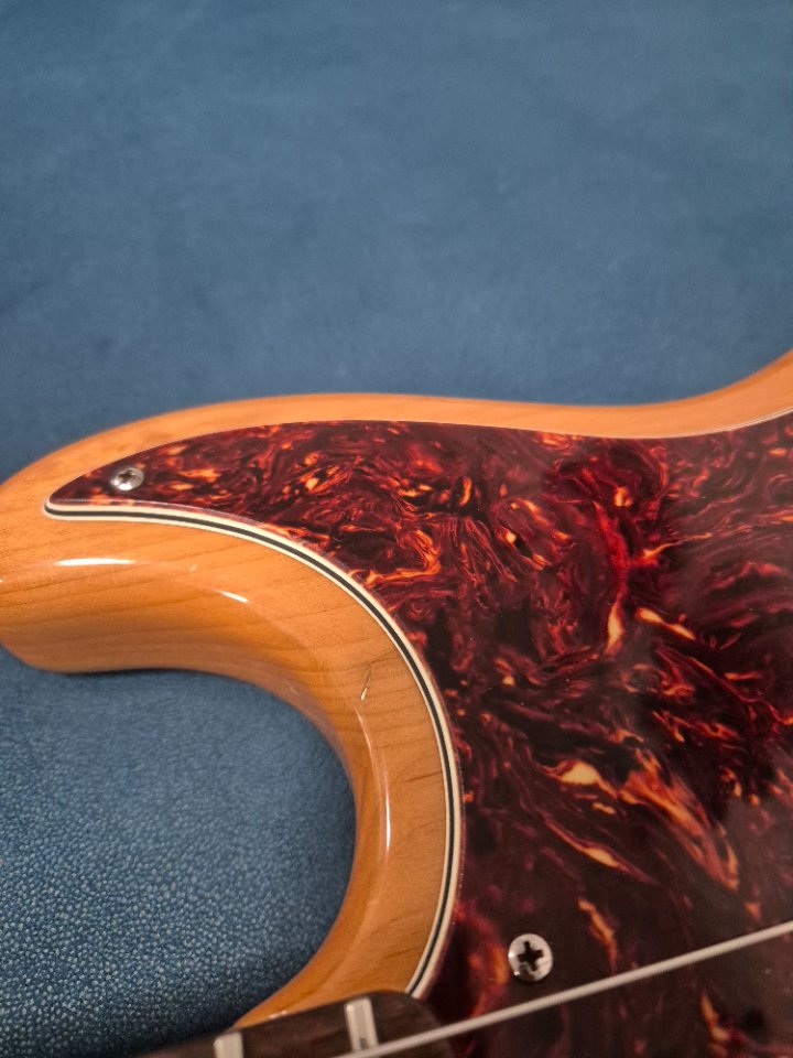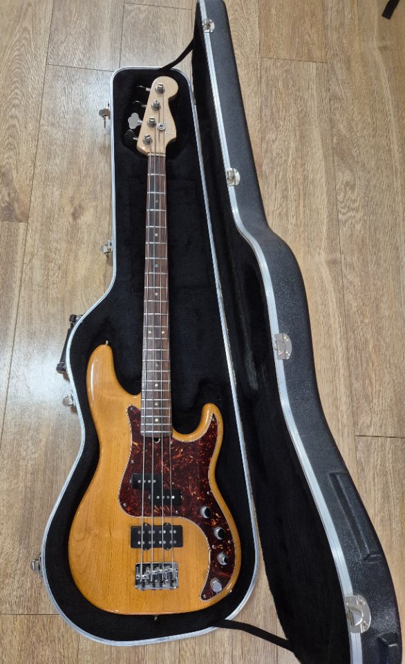 Bass in very good condition, nicely setup with low action, minor dings and scratches shown in pictures, all original condition with original hardshell case, very light and comfortable 3.7kg, nicely balanced thanks to original Hipshot ultralight tuners. Electronics work great, middle knob has slight sign of wear, weak center detent, but works fine.